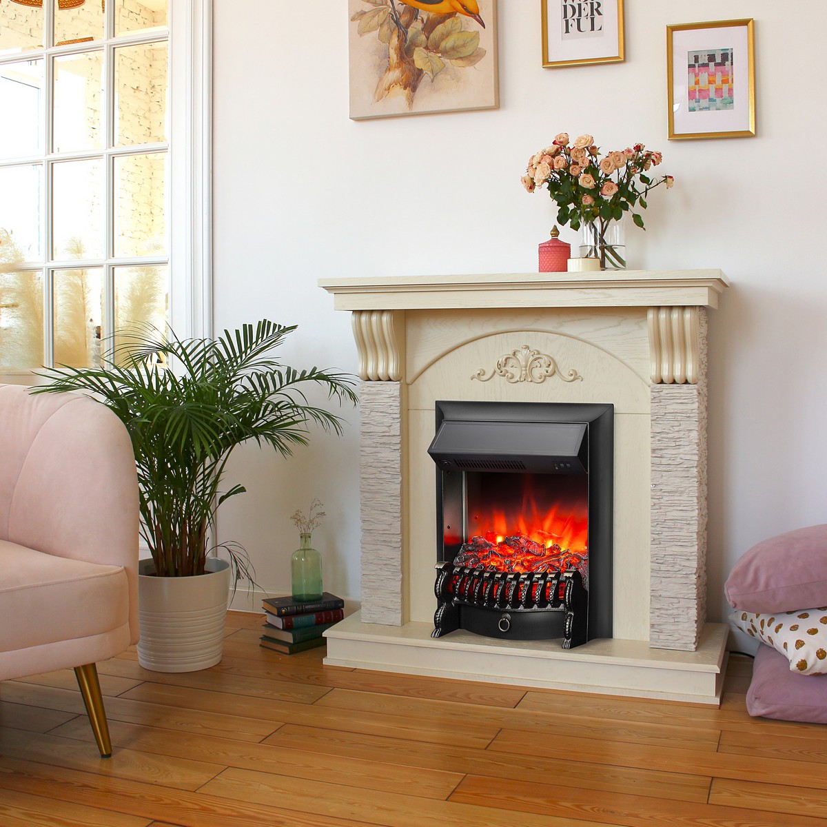 Электрокамин RealFlame Corfino WT айвори с очагом Fobos Lux Black