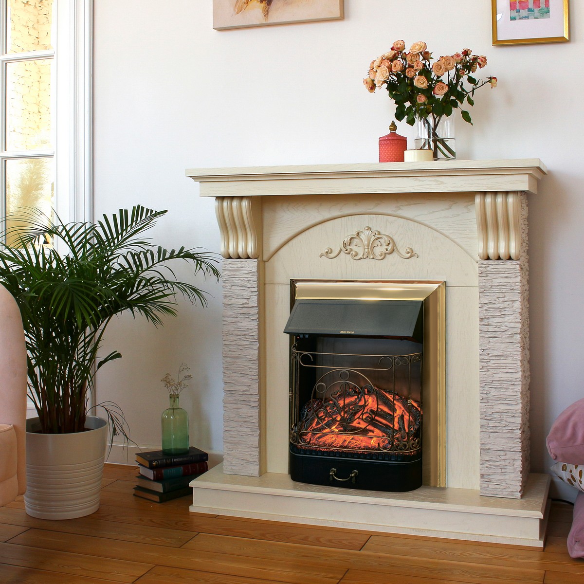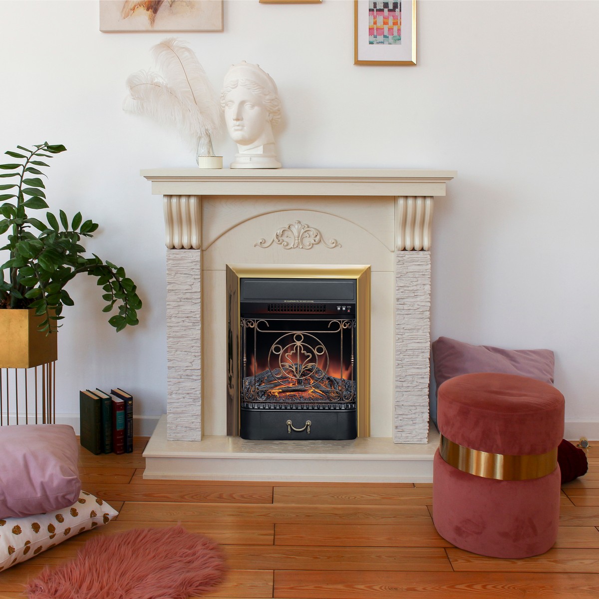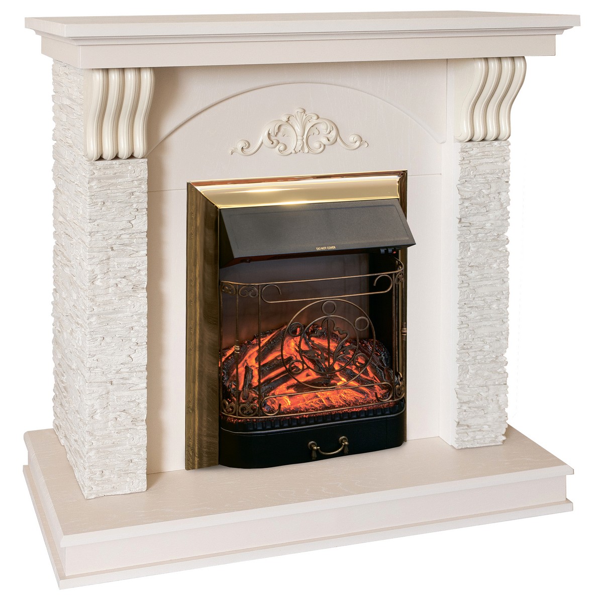 Электрокамин RealFlame Corfino WT айвори с очагом Majestic Lux Brass