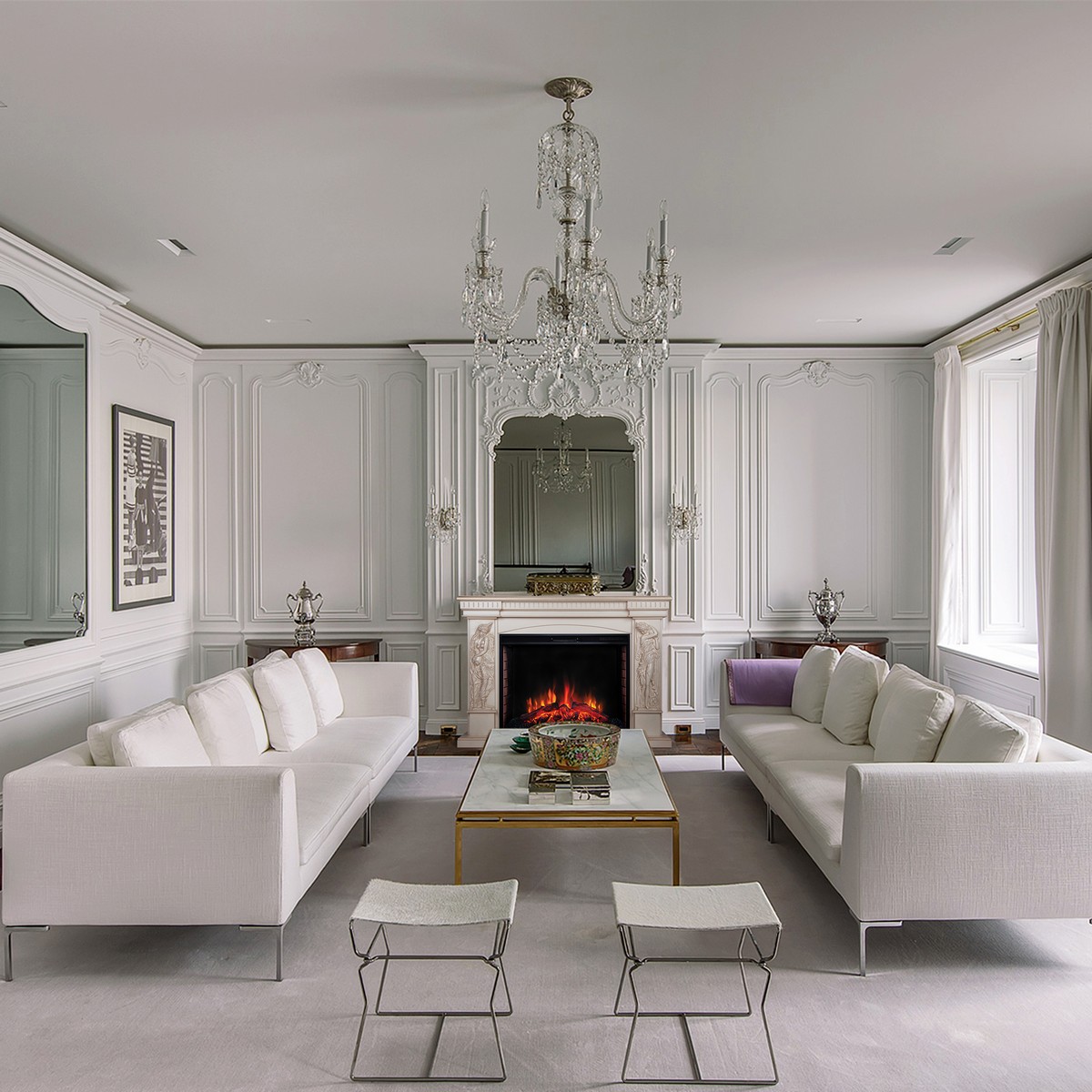 Камин DIVA станет идеальным завершением классической гостиной. Главным украшением портала служат рельефные колонны с изящными женскими фигурами. Ступенчатая крышка и арка над очагом подчеркивают гармоничные пропорции обрамления. Натуральный шпон дуба и патина, нанесенная вручную, придают вид состаренной роскоши.
