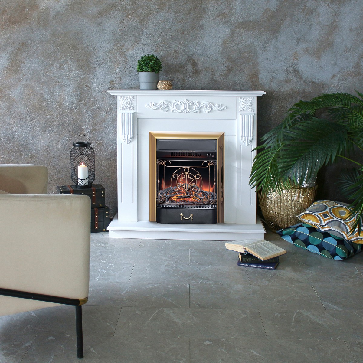Электрокамин RealFlame Dominica DN белый матовый с очагом Majestic Lux Brass