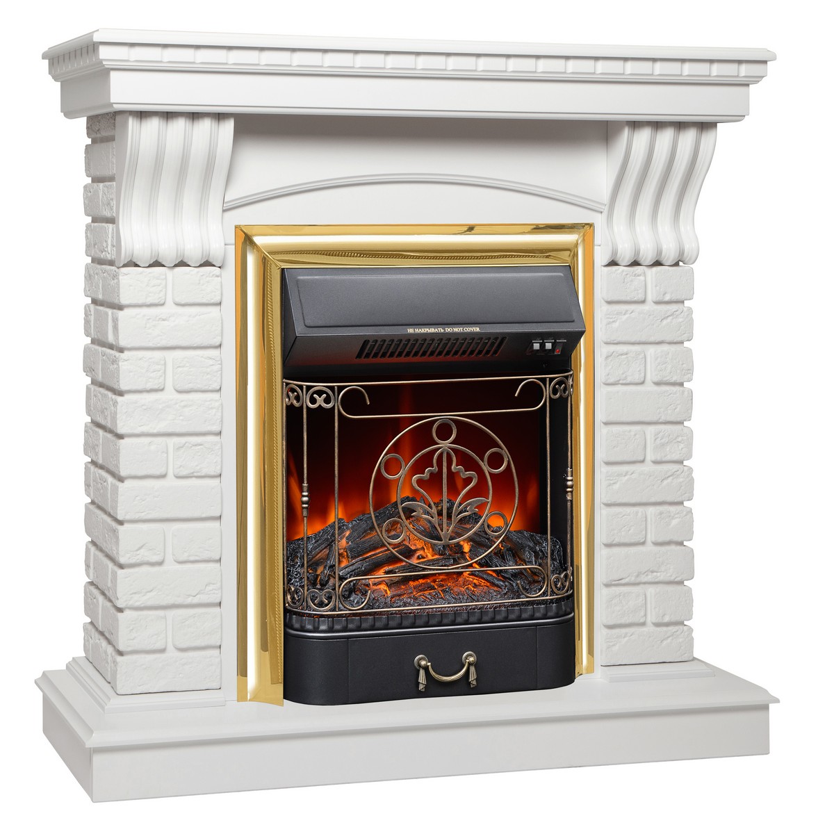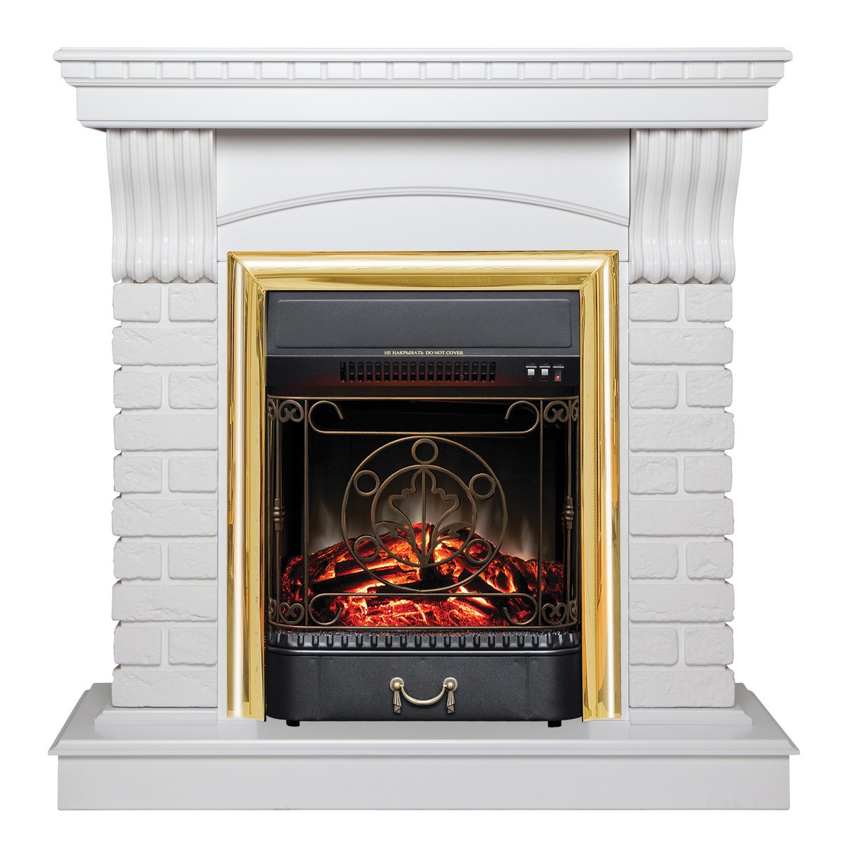 Электрокамин RealFlame Jazz WT белый с очагом Majestic Lux Brass