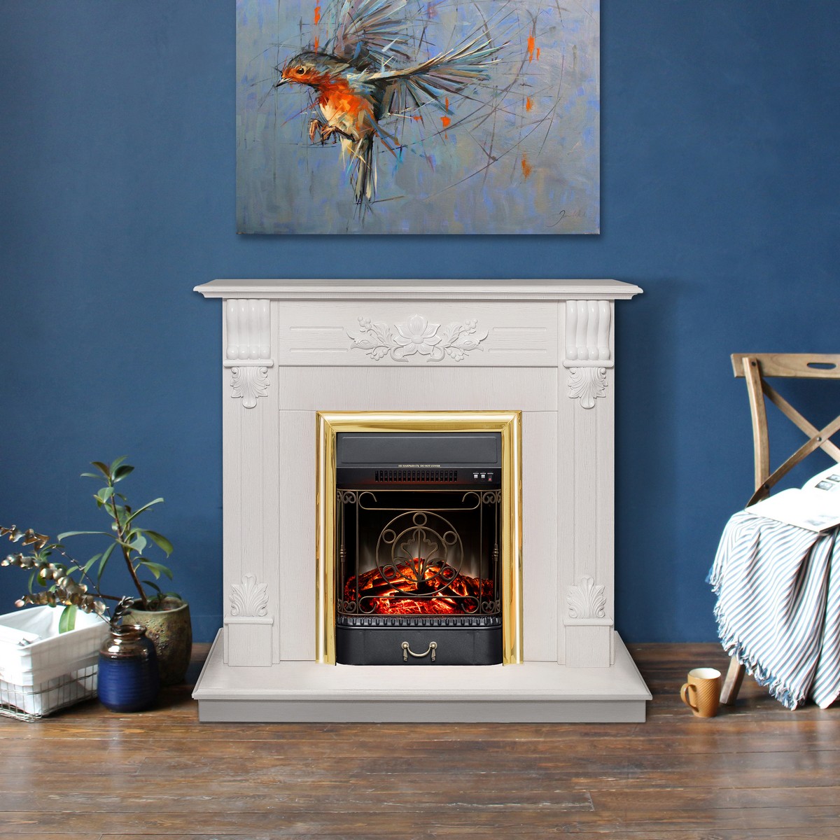 Электрокамин RealFlame Ottawa WT белое золото с очагом Majestic Lux Brass