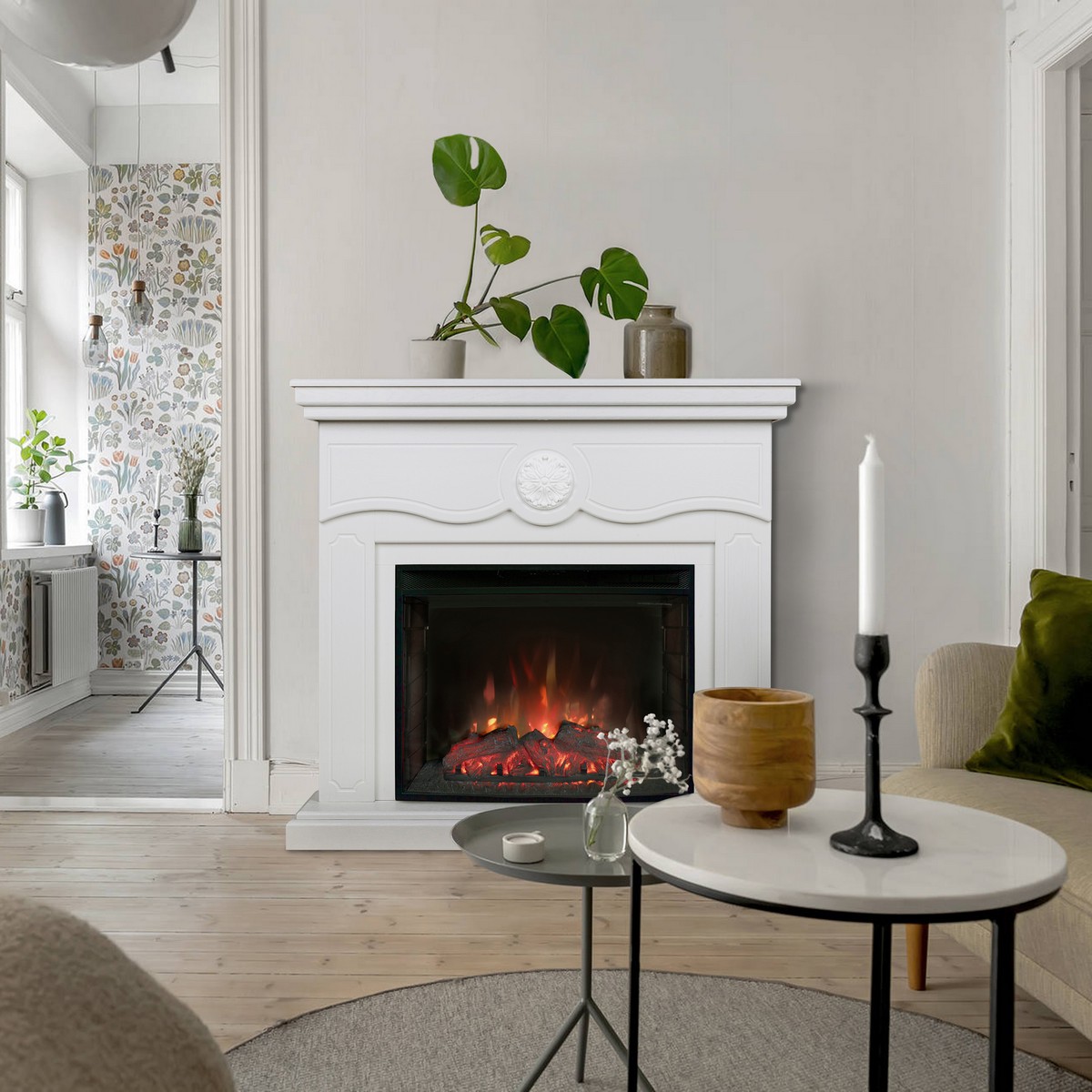 Электрокамин RealFlame Raffaele 25,5 WT белый с очагом Evrika 25,5 LED