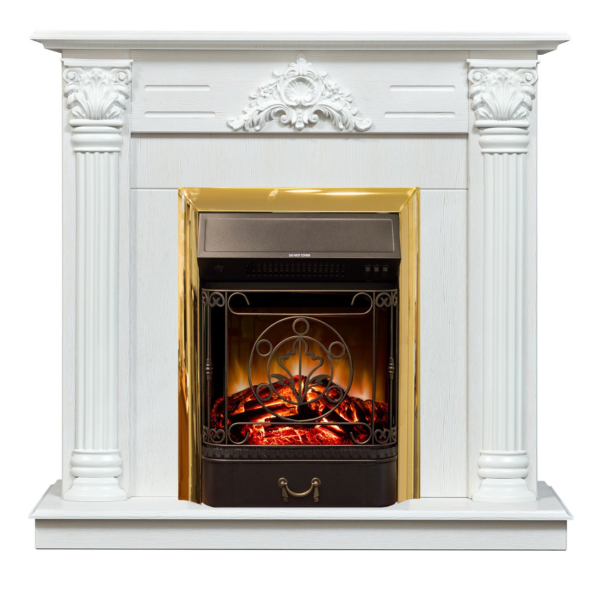 Электрокамин RealFlame Stefania WT белое золото с очагом Majestic Lux Brass