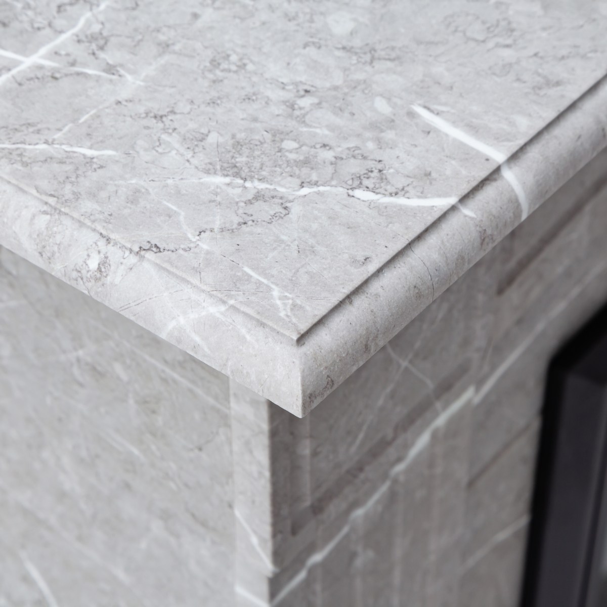 Каминокомплект ANDREA/АЛЬФА Мрамор серый с очагом Электроочаг MAJESTIC LUX/МАДЖЕСТИК