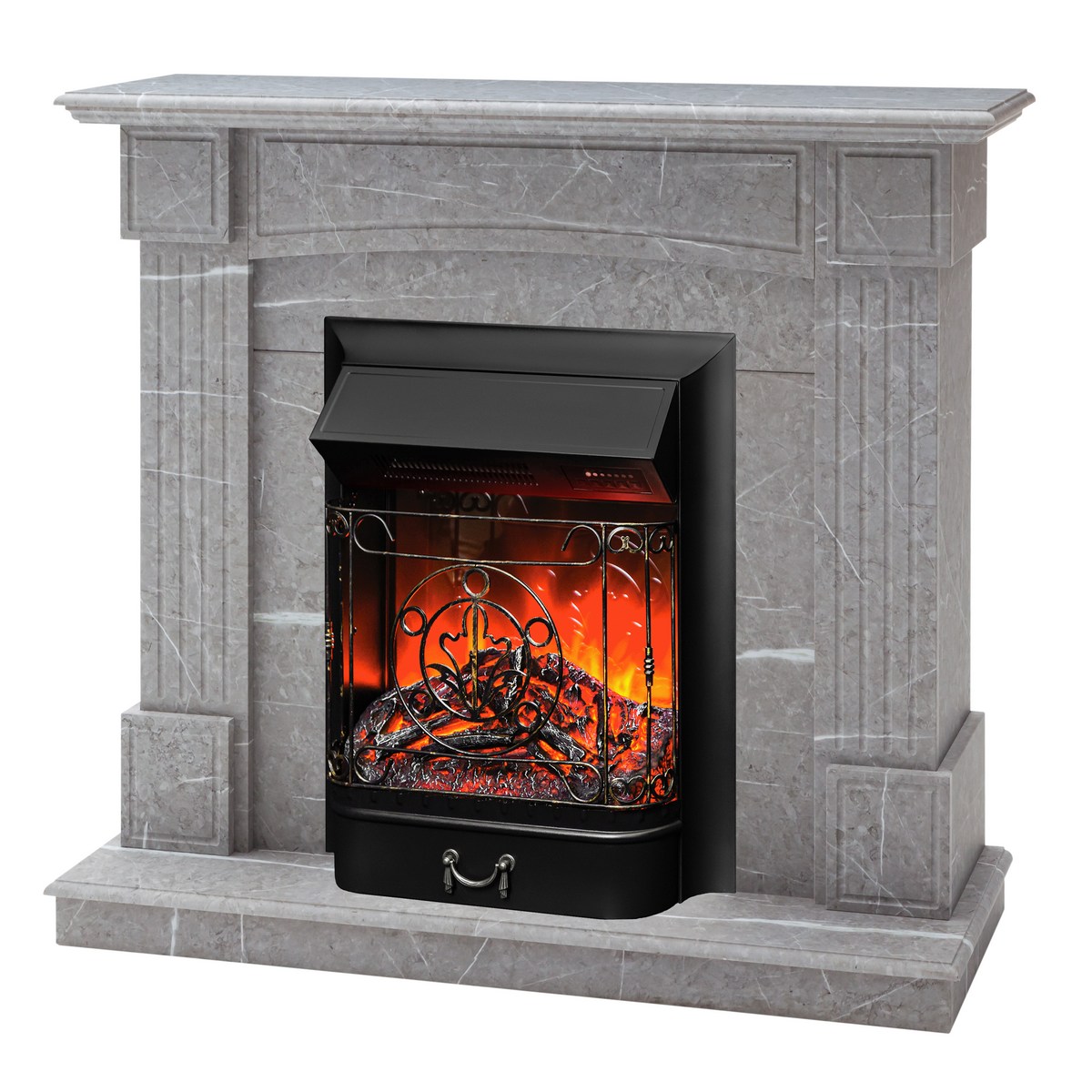 Каминокомплект ANDREA/АЛЬФА Мрамор серый с очагом Электроочаг MAJESTIC LUX RC/МАДЖЕСТИК С ПУЛЬТОМ