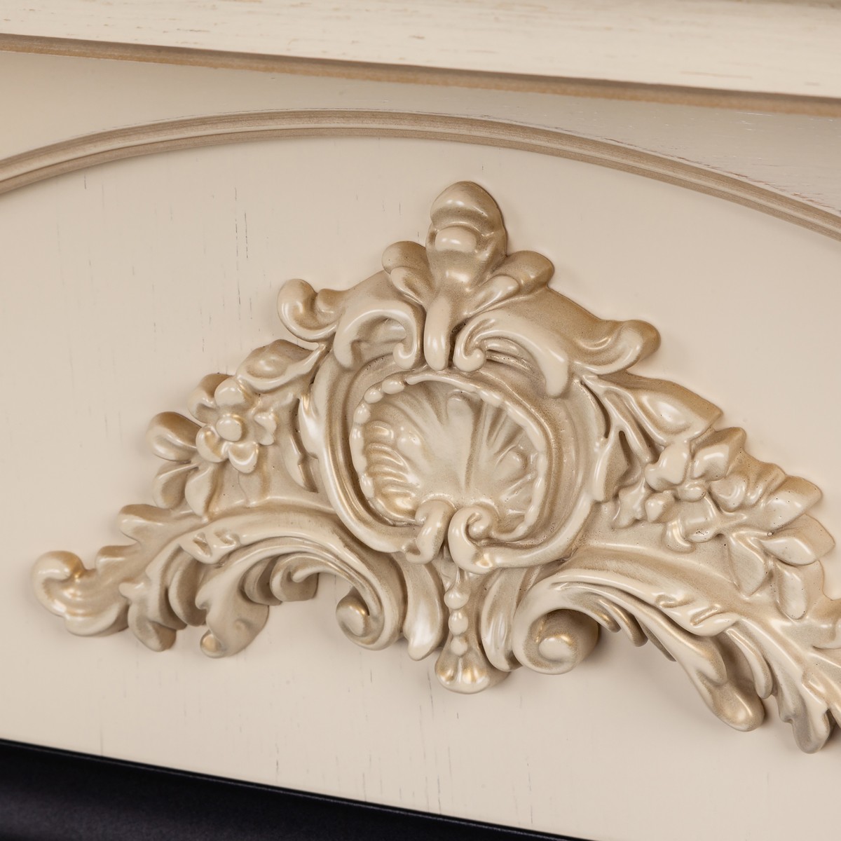 Каминокомплект ATHENA/АТЛАНТА Бежевый дуб с золотой патиной с очагом Электроочаг MAJESTIC LUX RC/МАДЖЕСТИК С ПУЛЬТОМ