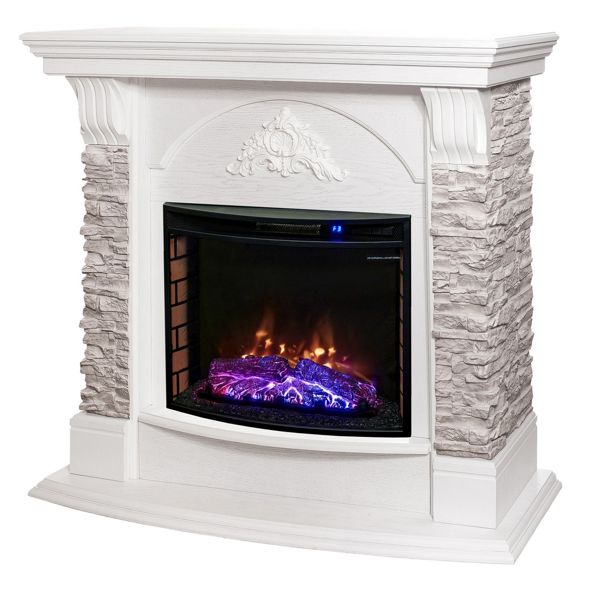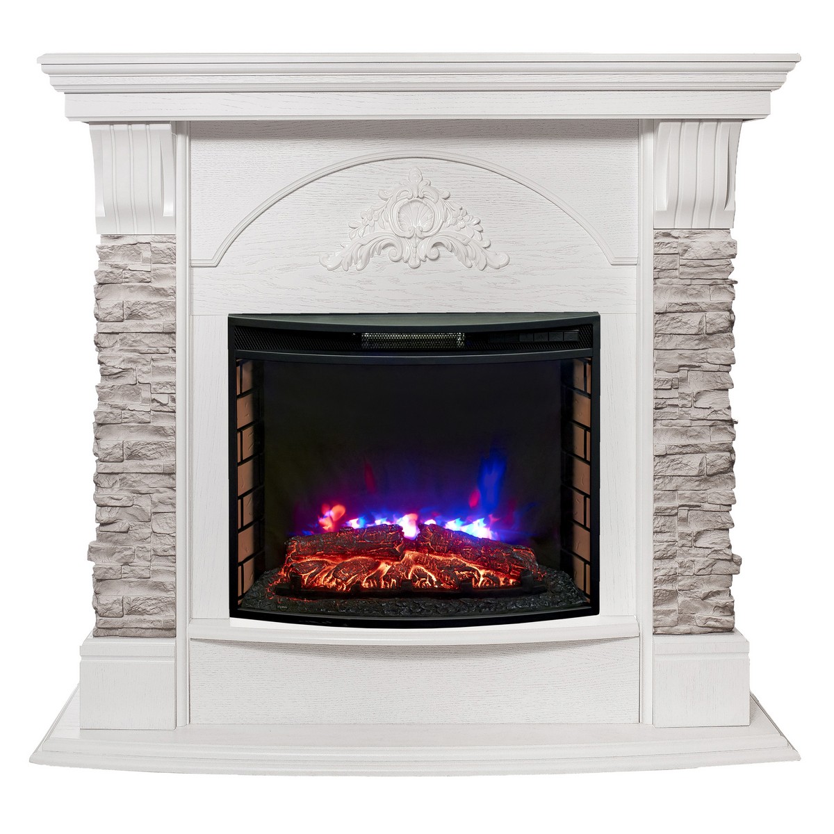 Каминокомплект ATHENA/АТЛАНТА GR Белый дуб с очагом Электроочаг QUEEN/КУИН 25.5