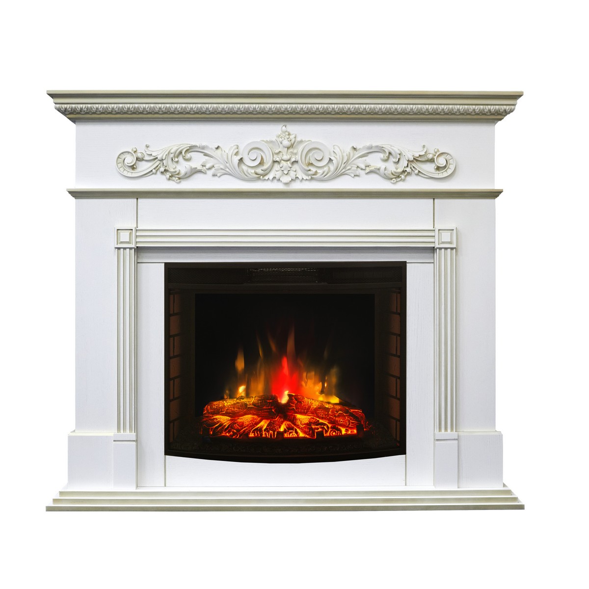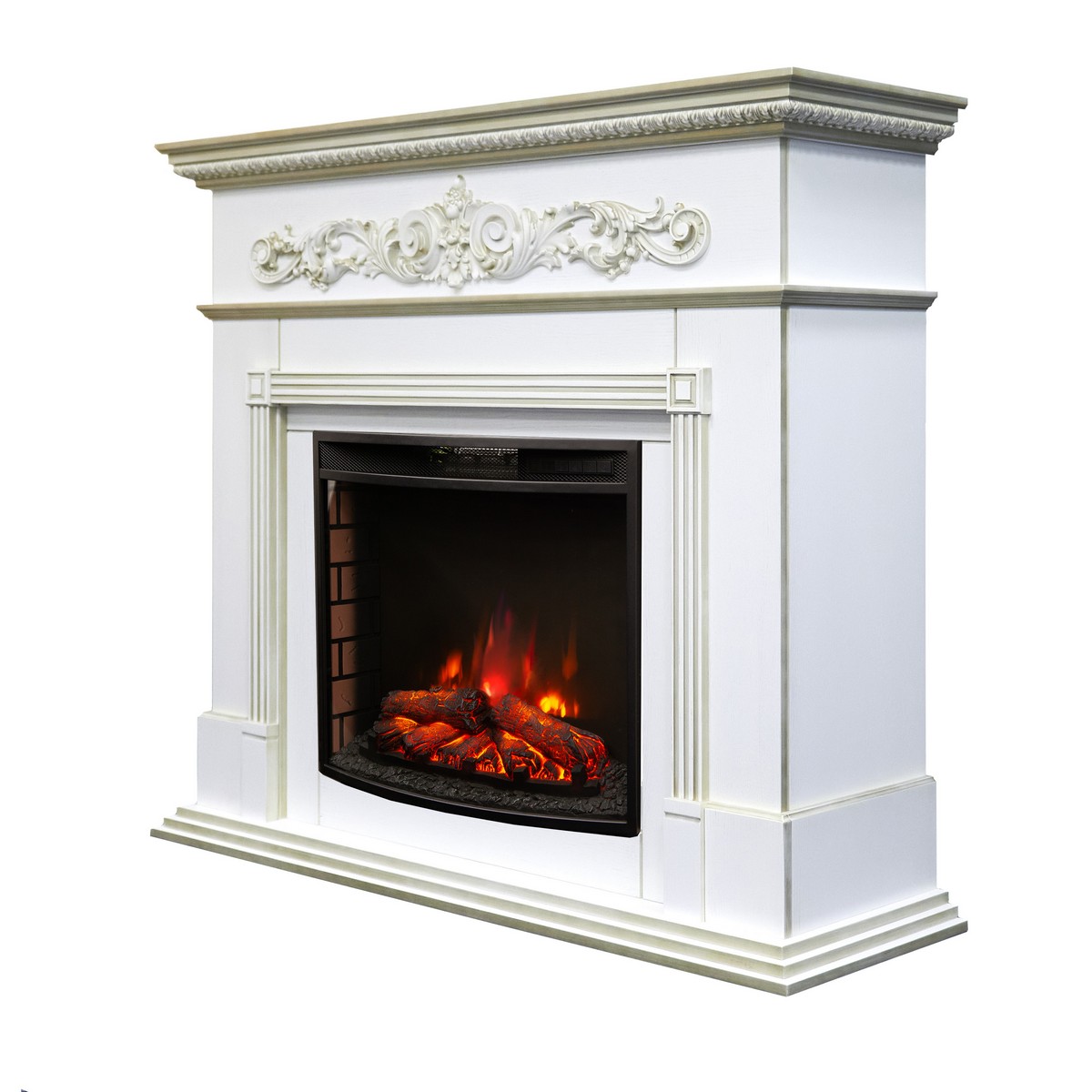 Каминокомплект BEETHOVEN/БЕТХОВЕН Белый дуб с золотой патиной с очагом Электроочаг EVRIKA 25.5