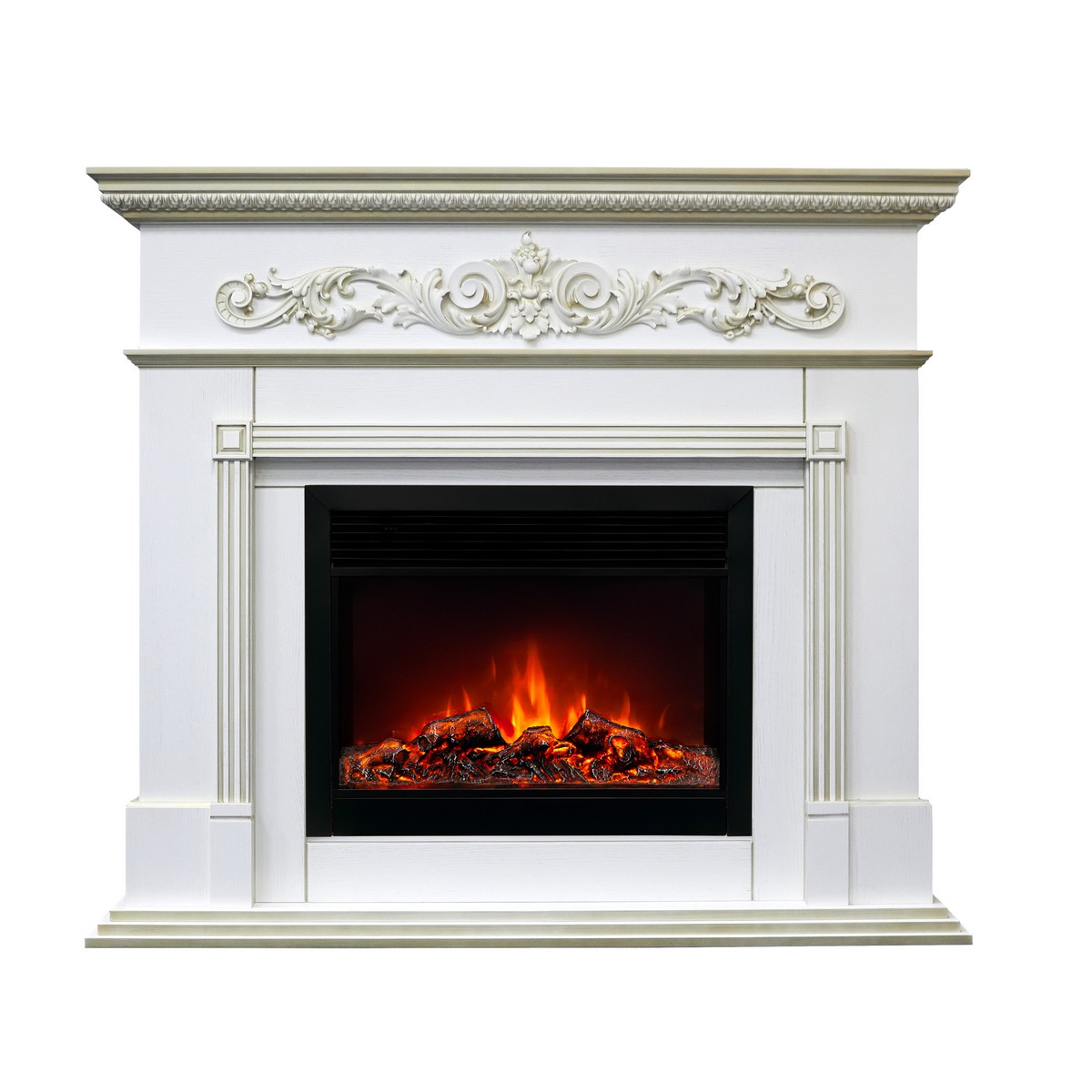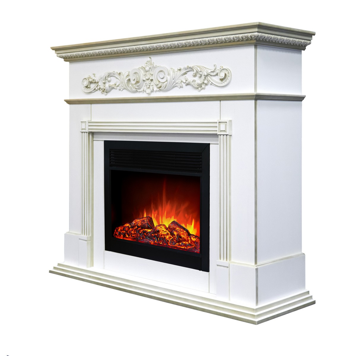 Каминокомплект BEETHOVEN/БЕТХОВЕН Белый дуб с золотой патиной с очагом Электроочаг MOONBLAZE LUX/МУНБЛЕЙЗ