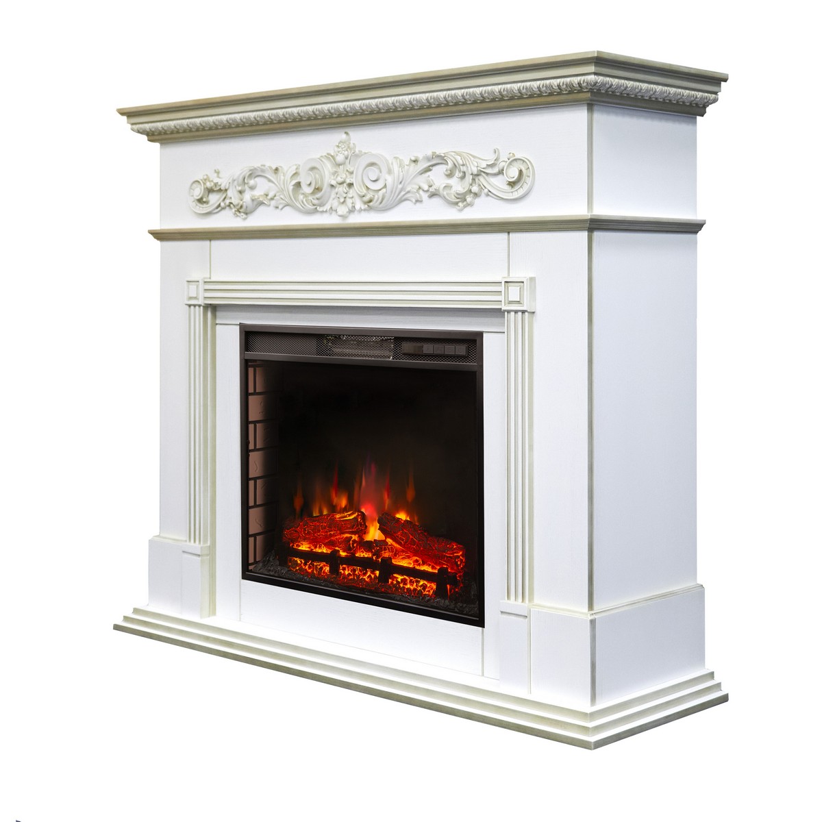 Каминокомплект BEETHOVEN/БЕТХОВЕН Белый дуб с золотой патиной с очагом Электроочаг SPARTA 25.5