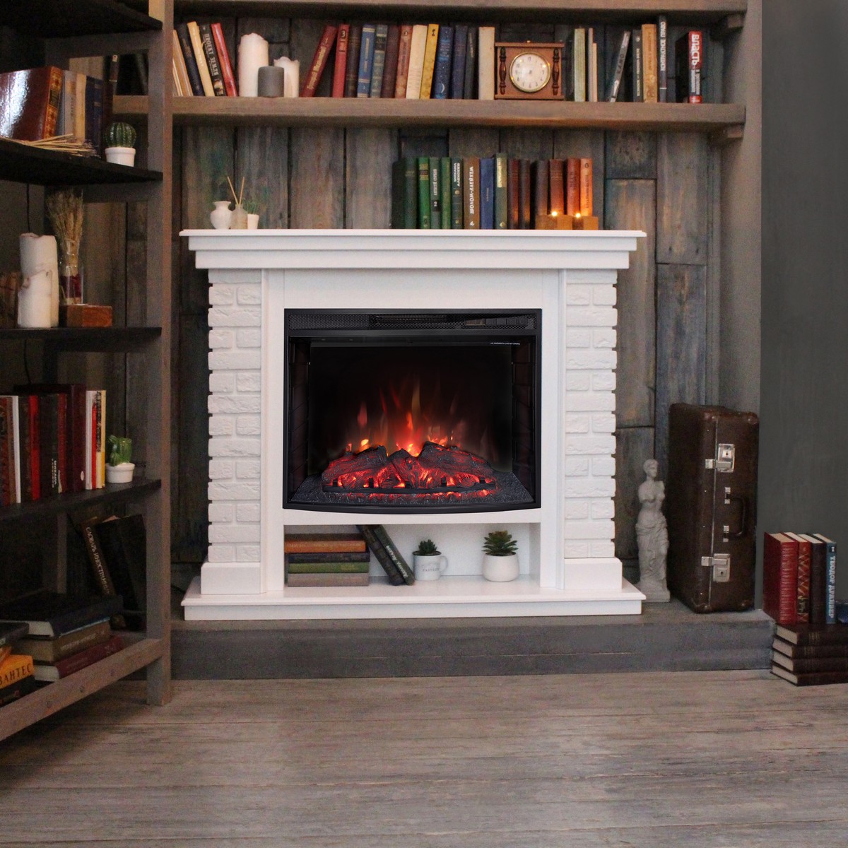 Каминокомплект BRIXTON/ЭЛЬБРУС Белый с очагом Электроочаг EVRIKA 25.5