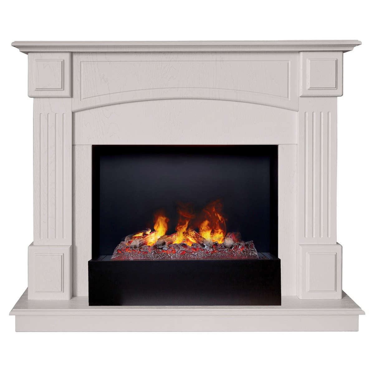 Каминокомплект CAROLINA/БОСТОН Береза белая с очагом Электроочаг CASSETTE/КАССЕТА 630 С ДРОВАМИ
