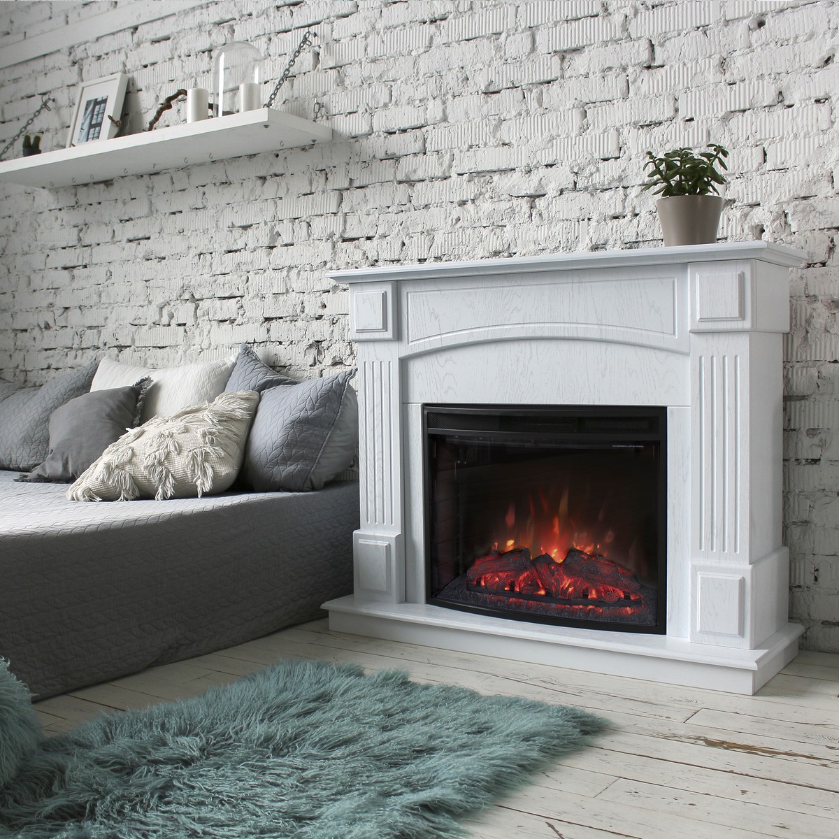 Каминокомплект CAROLINA/БОСТОН Бьянко с очагом Электроочаг EVRIKA 25.5