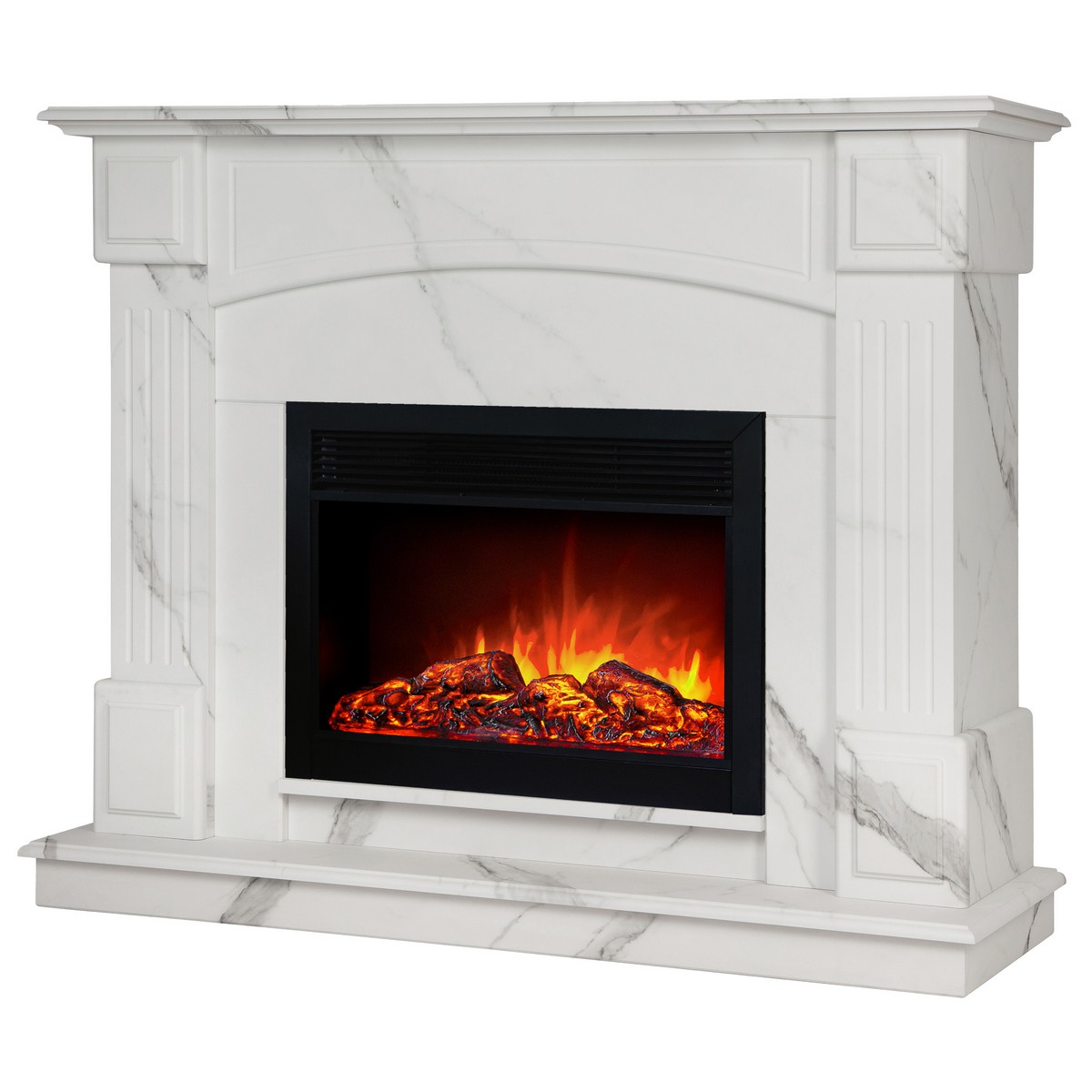 Каминокомплект CAROLINA/БОСТОН Мрамор Каррара с очагом Электроочаг MOONBLAZE LUX/МУНБЛЕЙЗ