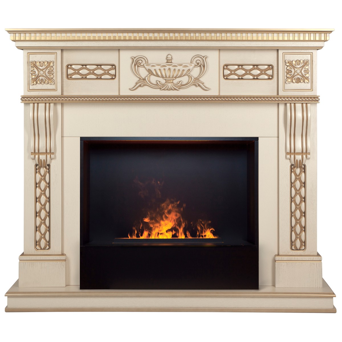 Каминокомплект CORSICA LUX/МАЛАГА ЛЮКС Бежевый дуб с золотой патиной с очагом Электроочаг CASSETTE/КАССЕТА 630