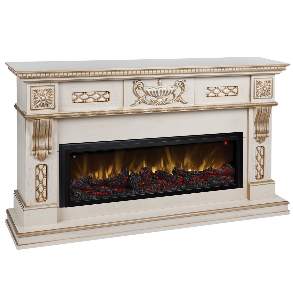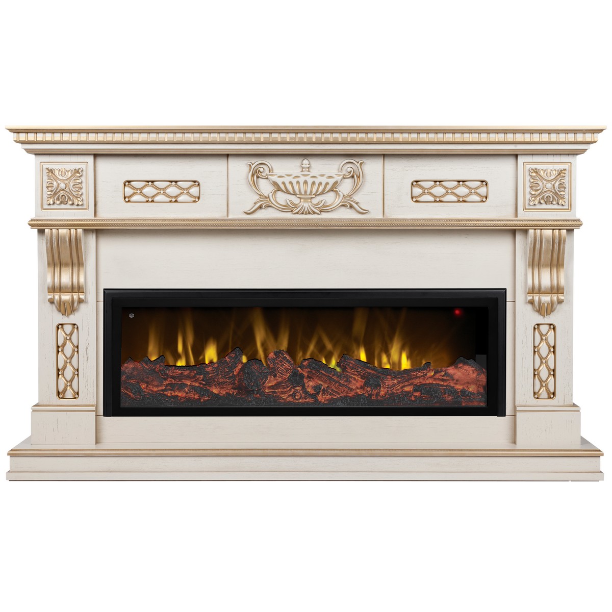 Каминокомплект CORSICA/МАЛАГА Бежевый дуб с золотой патиной с очагом Электроочаг BEVERLY-S MULTY/БЕВЕРЛИ МУЛЬТИКОЛОР
