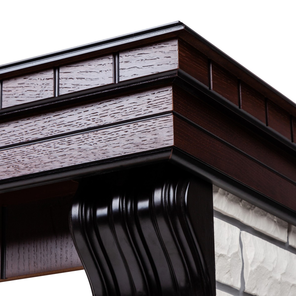 Обрамление в стиле ""Кантри"" изготовлено из искусственного камня и шпонированного МДФ. Камень белого цвета.