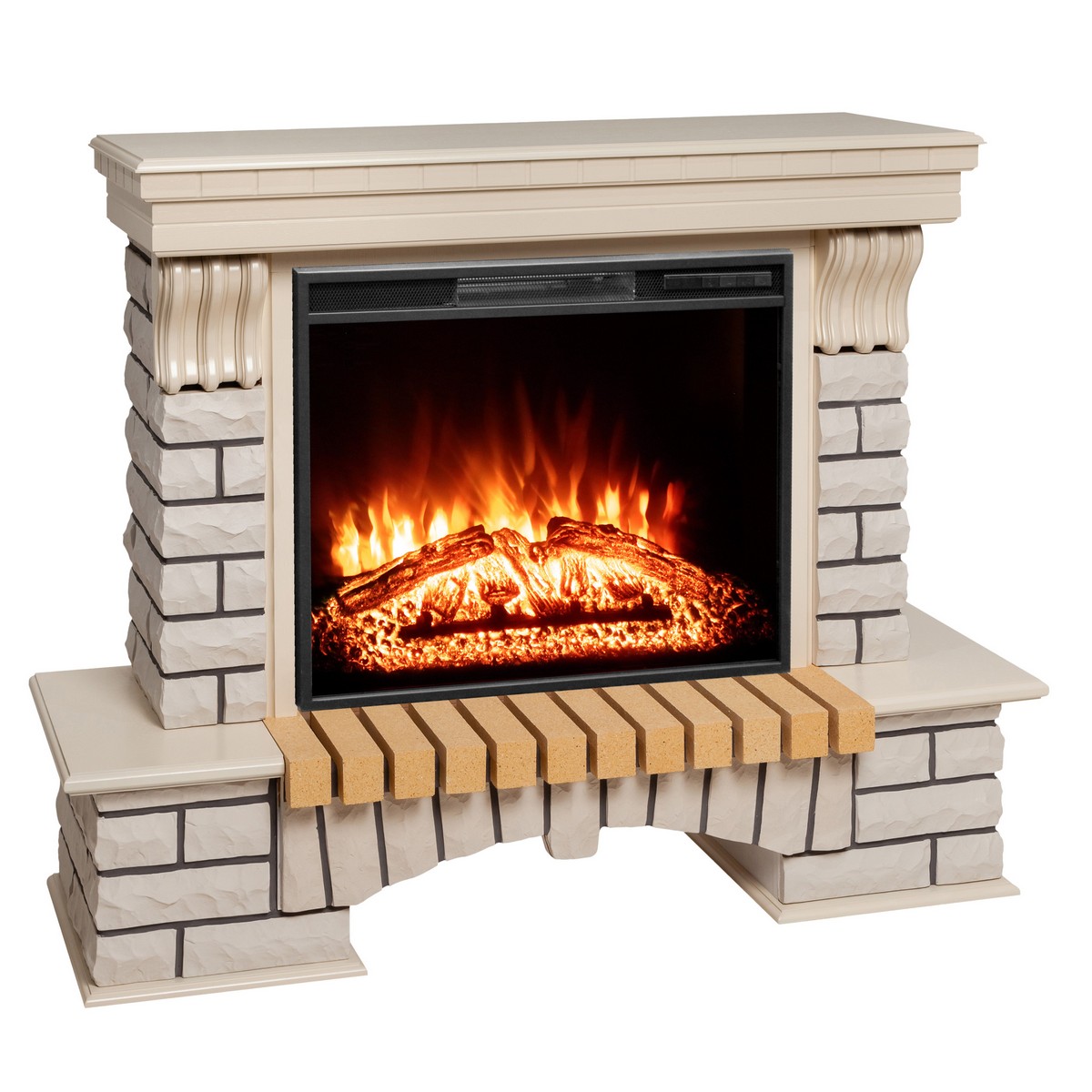 Каминокомплект COUNTRY/БРУКЛИН Бежевый дуб с очагом Электроочаг AQUAMARINE/АКВАМАРИН 26