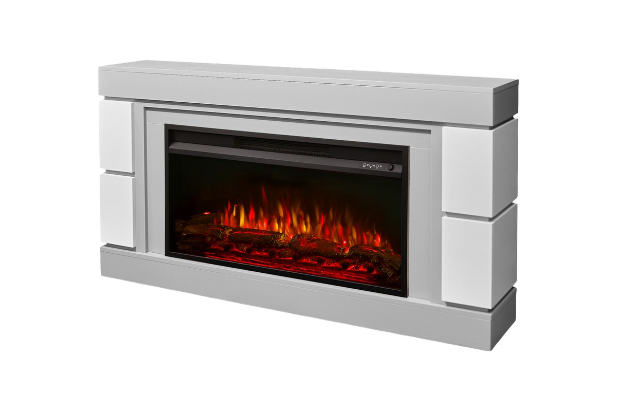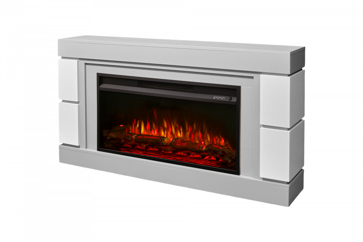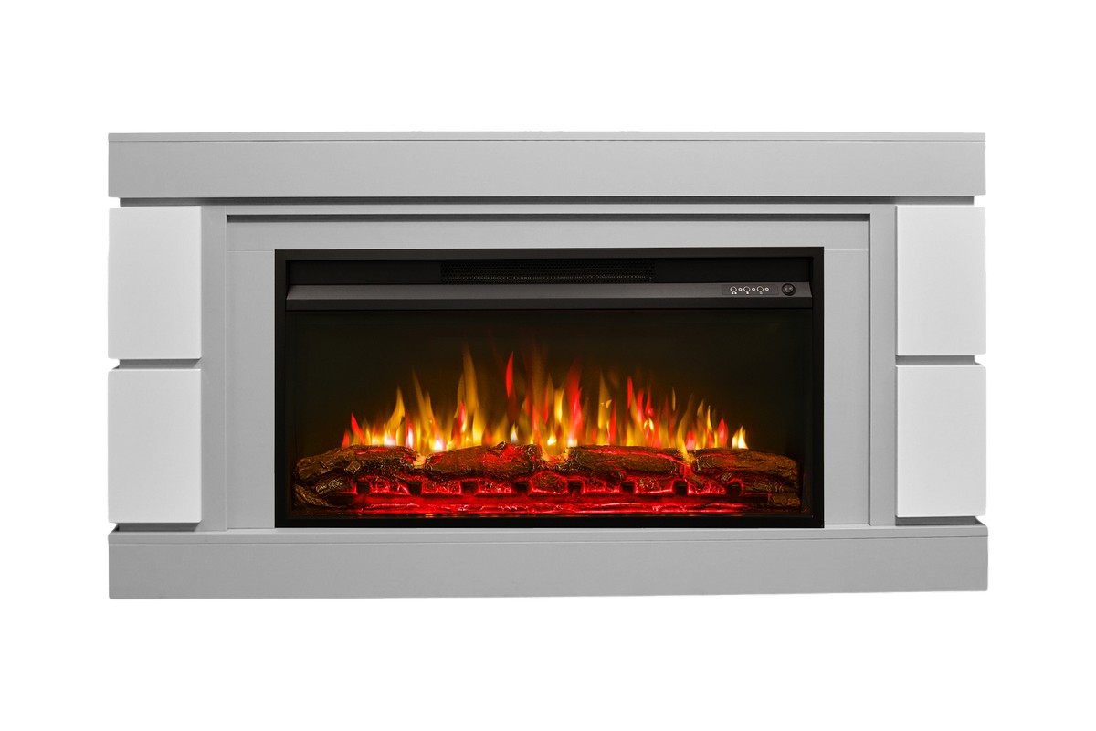 Каминокомплект ДЭНВЕР Серый камень/Белый с очагом Электроочаг PREMIER/ПРЕМЬЕР 36