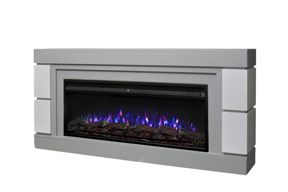 Каминокомплект ДЭНВЕР Серый камень/Белый с очагом Электроочаг PREMIER/ПРЕМЬЕР 45