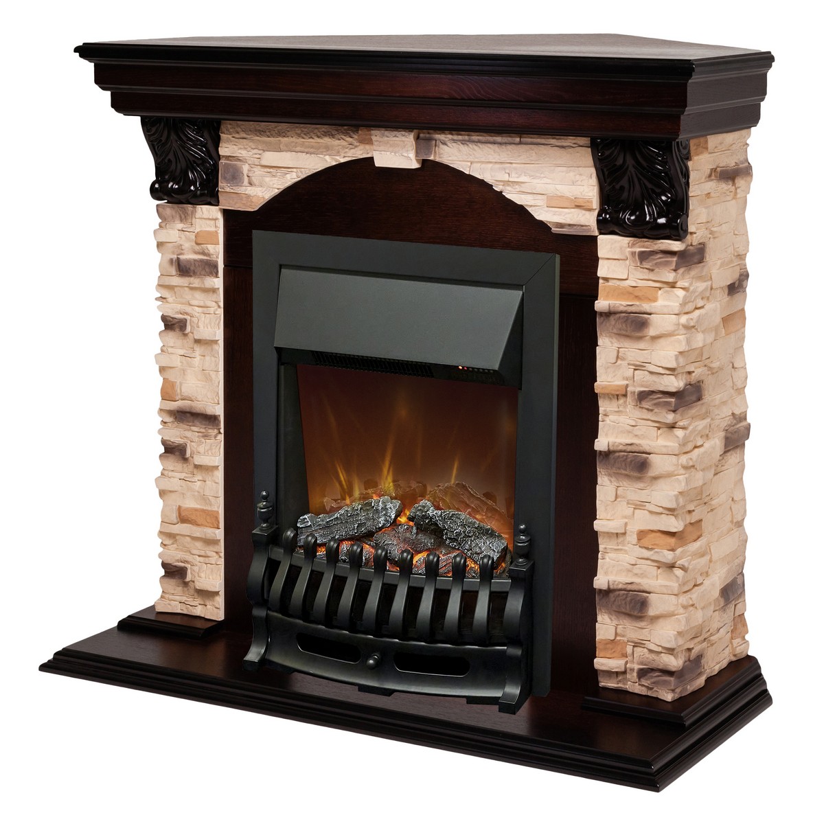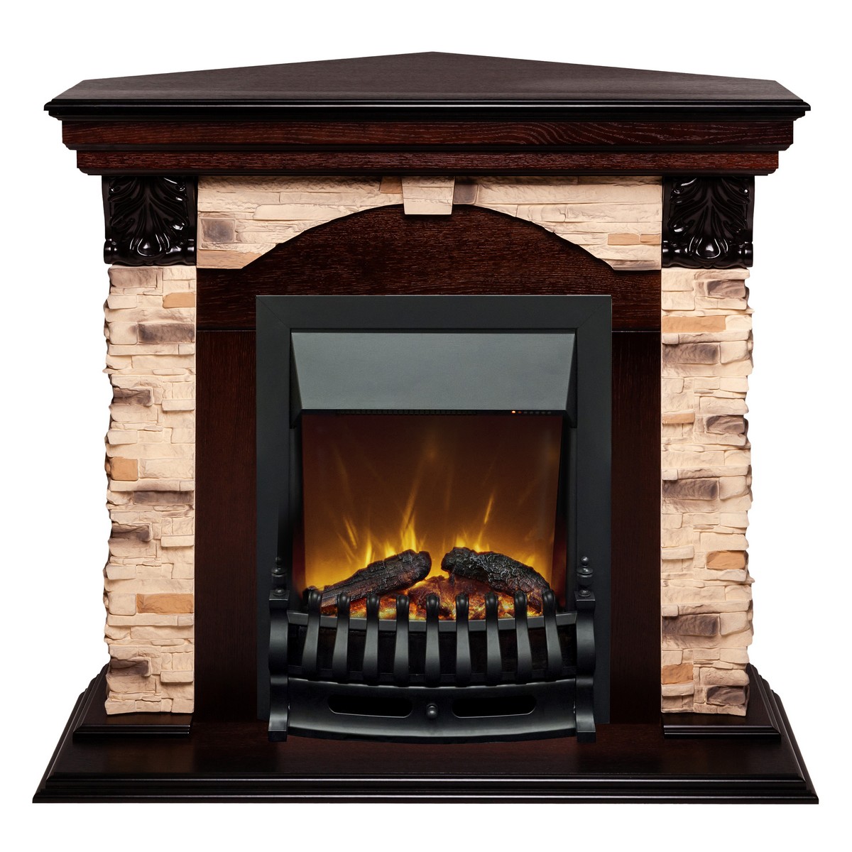 Каминокомплект DUBLIN CORNER ROCK/ДУБЛИН УГЛ. РОК Античный дуб с очагом Электроочаг FOBOS ЛАЙТ/ФОБОС ЛАЙТ