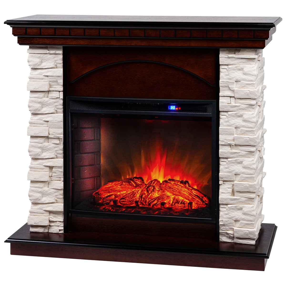 Электрический камин Elford в сборе с очагом. Лаконичный дизайн делает его универсальным для разных интерьеров и подходящим как для квартиры, так и для дачи. Изготовлен из МДФ и литого камня.