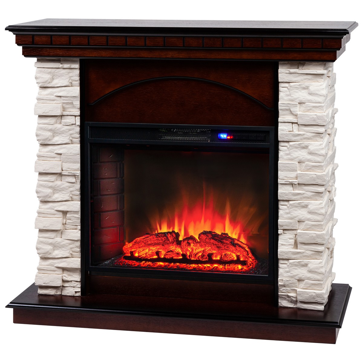 Электрический камин Elford в сборе с очагом. Лаконичный дизайн делает его универсальным для разных интерьеров и подходящим как для квартиры, так и для дачи. Изготовлен из МДФ и литого камня.