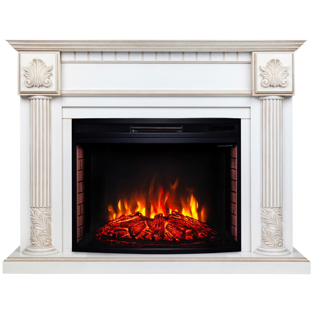 Каминокомплект IMPERIA/ПРЕСТИЖ Белый дуб с золотой патиной с очагом Электроочаг FIRESPACE/ФАЕРСПЕЙС 33