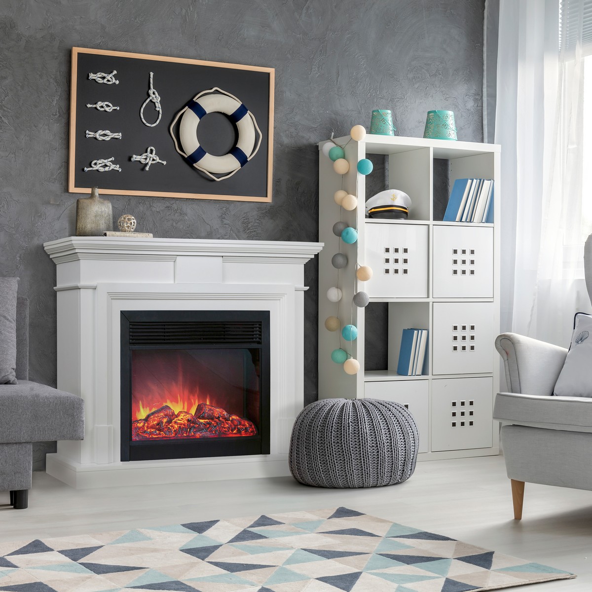 Каминокомплект MARCO/СМАРТ Белый матовый с очагом Электроочаг MOONBLAZE LUX/МУНБЛЕЙЗ