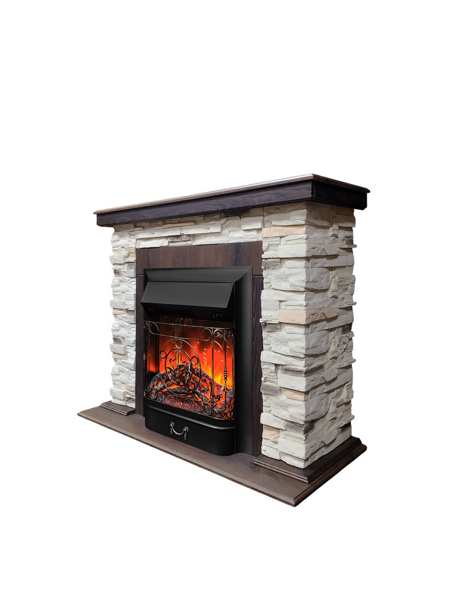 Каминокомплект НОРД Орех фактурный с очагом Электроочаг MAJESTIC LUX/МАДЖЕСТИК