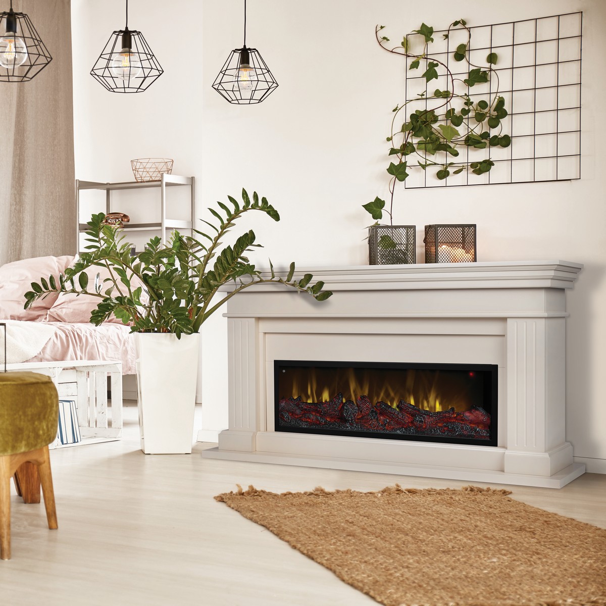 Каминокомплект ONTARIO/ЛЕОНАРДО Белый матовый с очагом Электроочаг BEVERLY-S MULTY/БЕВЕРЛИ МУЛЬТИКОЛОР