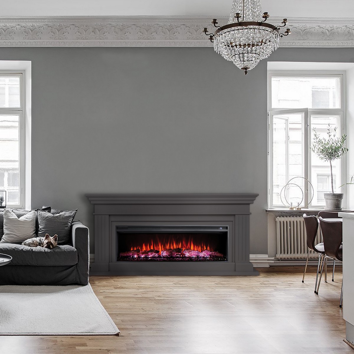 Каминокомплект ONTARIO/ЛЕОНАРДО Графит с очагом Электроочаг JOKER/ДЖОКЕР 52