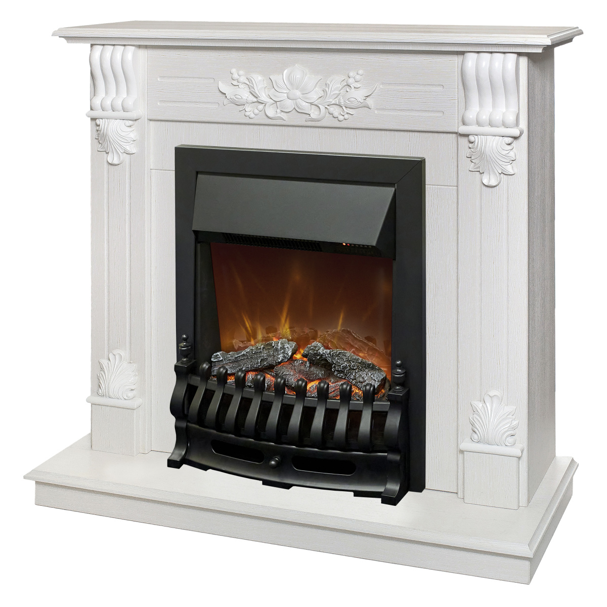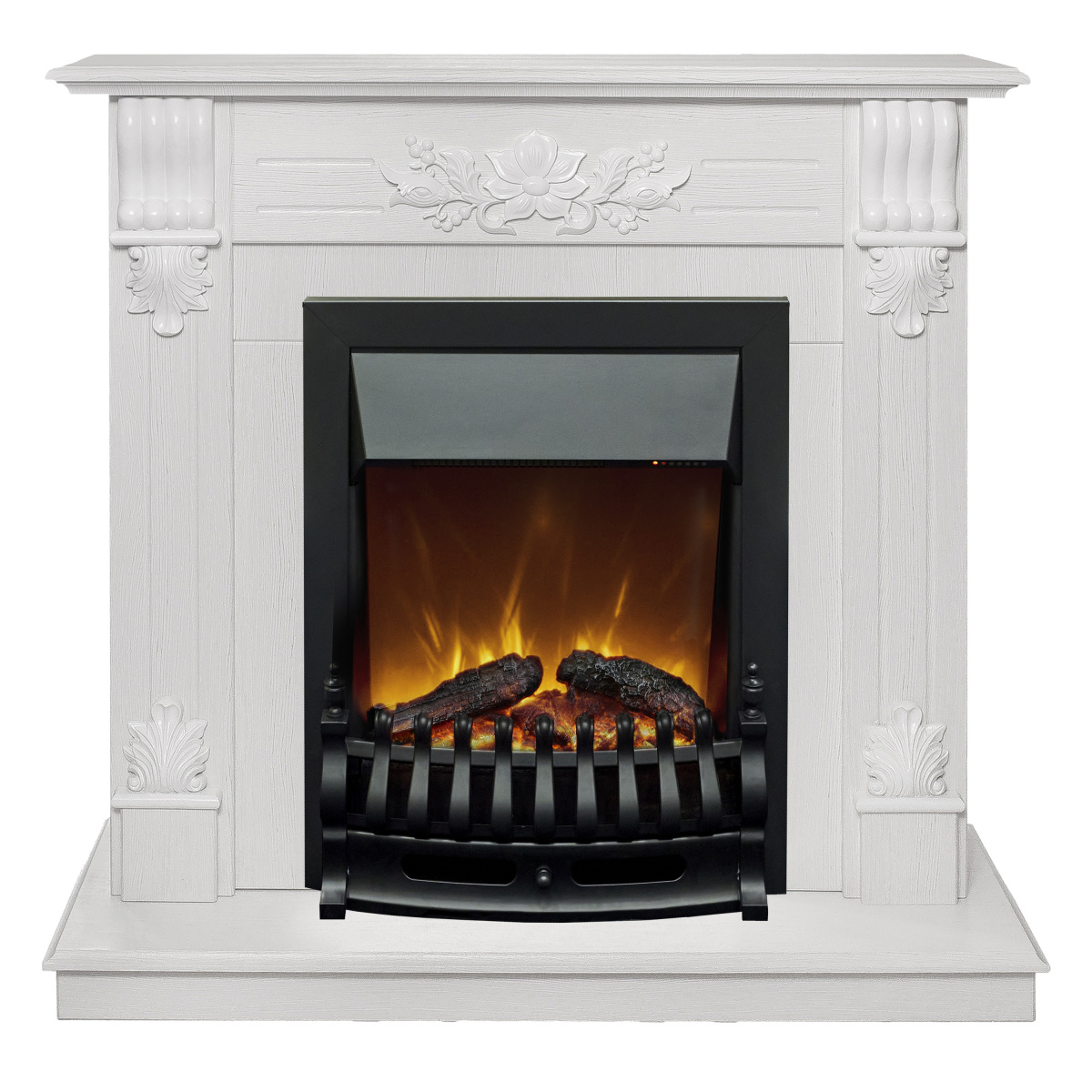 Каминокомплект OTTAWA/ПРАГА Белый фактурный с золотой патиной с очагом Электроочаг FOBOS ЛАЙТ/ФОБОС ЛАЙТ