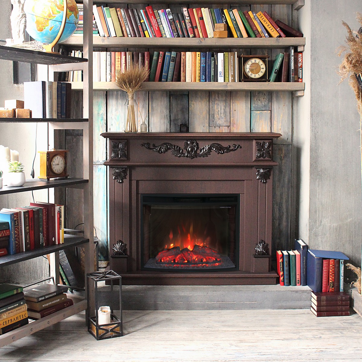 Каминокомплект PHILADELPHIA/ВЕРОНА Орех с очагом Электроочаг EVRIKA 25.5