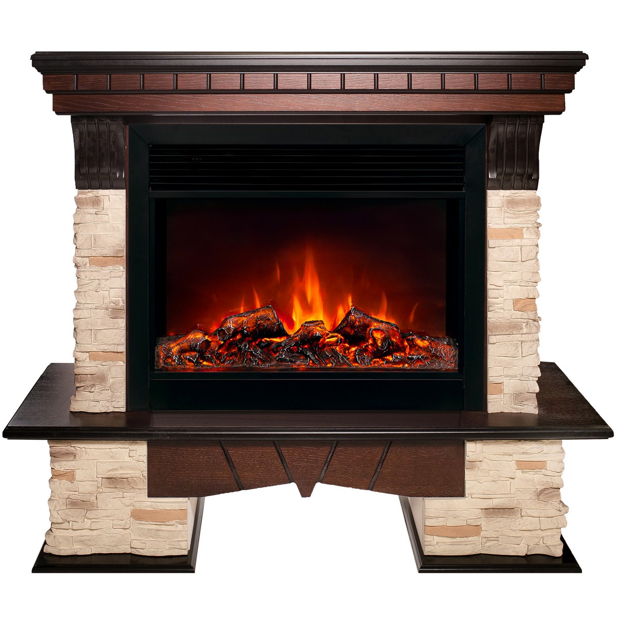 Каминокомплект ROCKLAND/ЧЕЛСИ Античный дуб с очагом Электроочаг MOONBLAZE LUX/МУНБЛЕЙЗ
