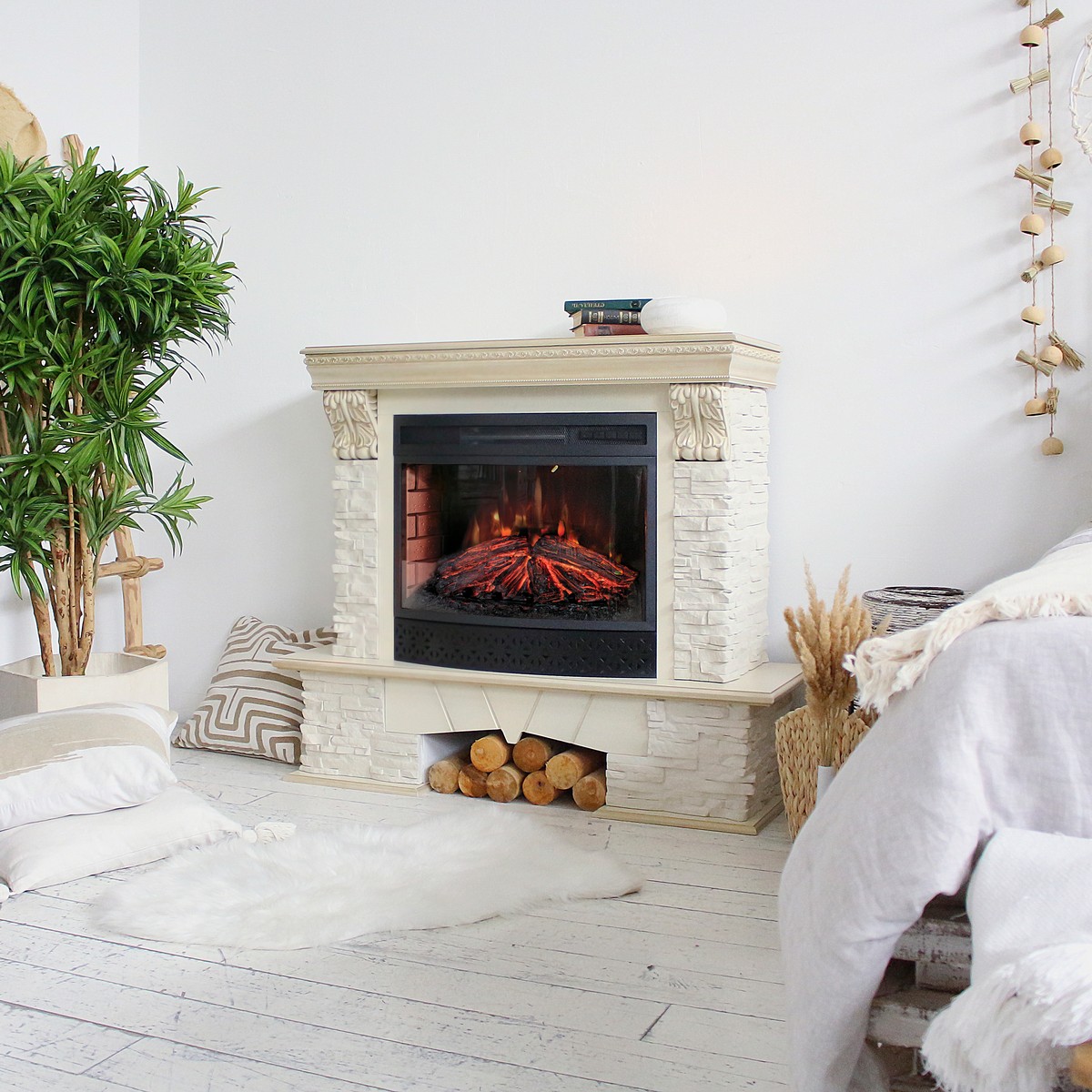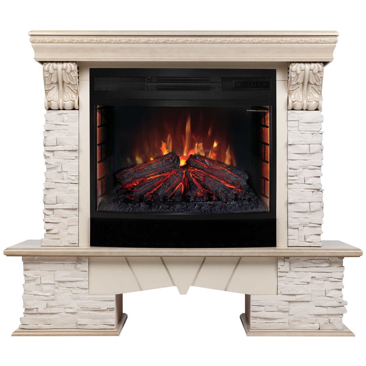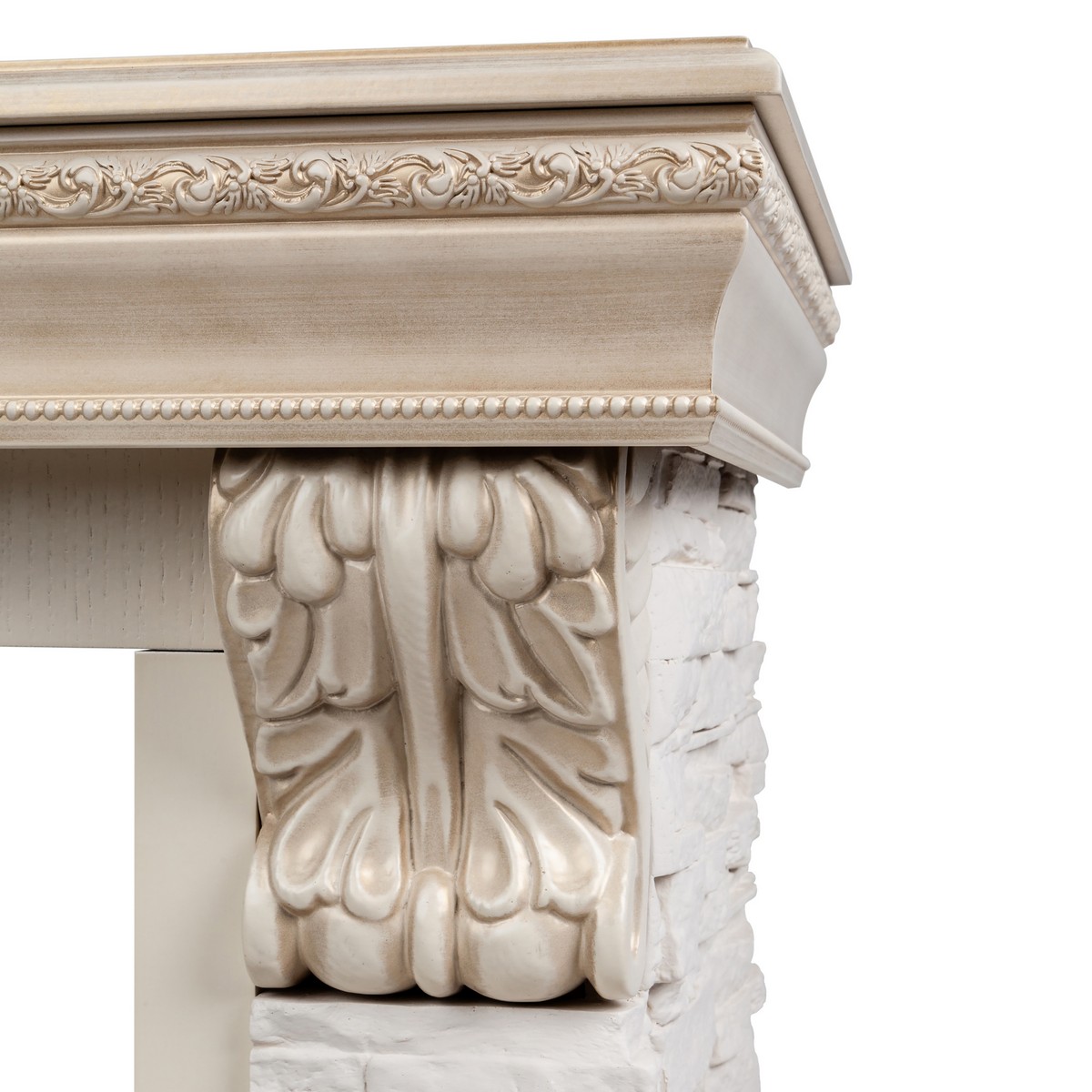 Каминокомплект ROCKLAND LUX/ЧЕЛСИ ЛЮКС Белый дуб с золотой патиной с очагом Электроочаг FIREFIELD 25