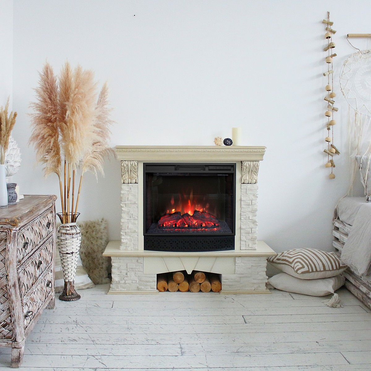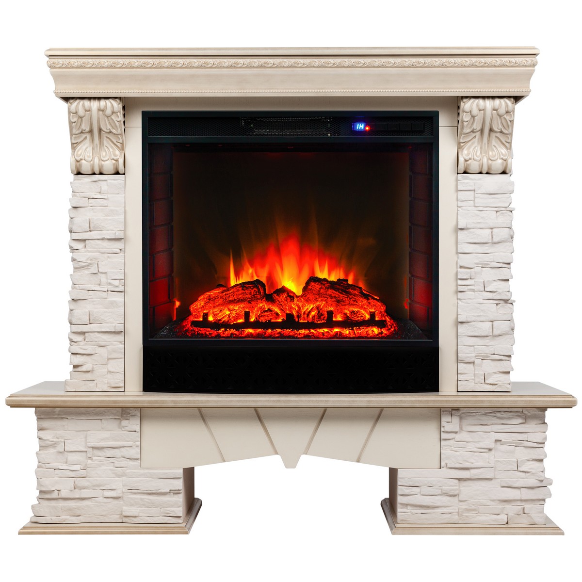 Каминокомплект ROCKLAND LUX/ЧЕЛСИ ЛЮКС Белый дуб с золотой патиной с очагом Электроочаг SPARTA 25.5