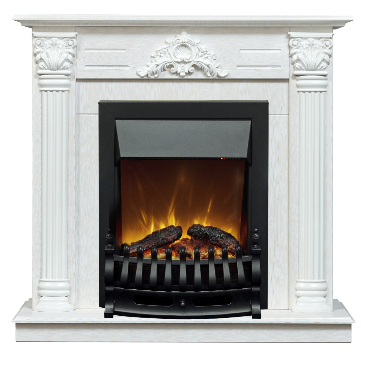 Каминокомплект STEFANIA/ВИОЛА Белый фактурный с золотой патиной с очагом Электроочаг FOBOS ЛАЙТ/ФОБОС ЛАЙТ