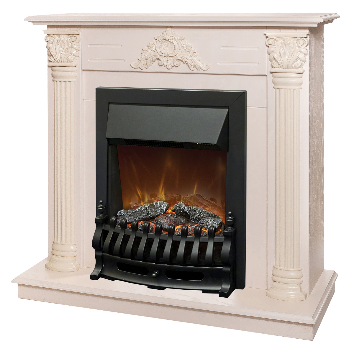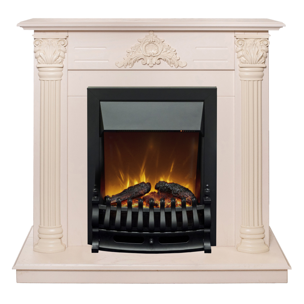 Каминокомплект STEFANIA/ВИОЛА Слоновая кость с очагом Электроочаг FOBOS ЛАЙТ/ФОБОС ЛАЙТ