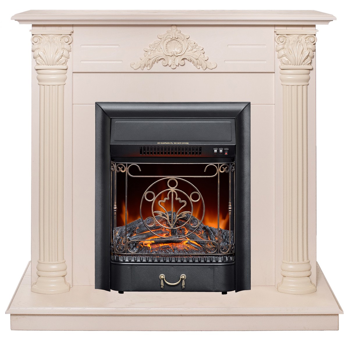 Каминокомплект STEFANIA/ВИОЛА Слоновая кость с очагом Электроочаг MAJESTIC LUX/МАДЖЕСТИК