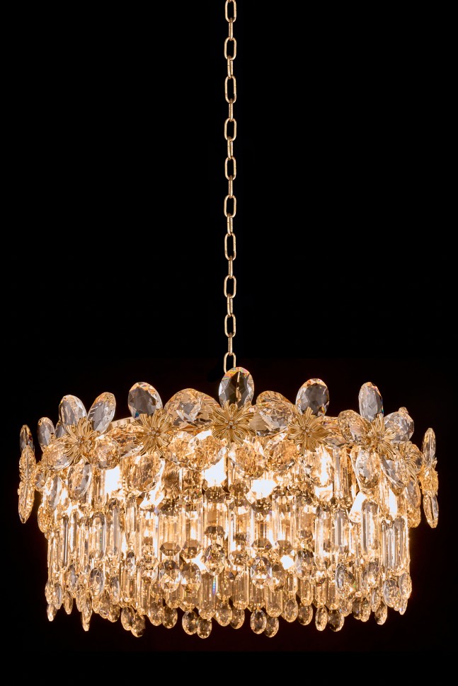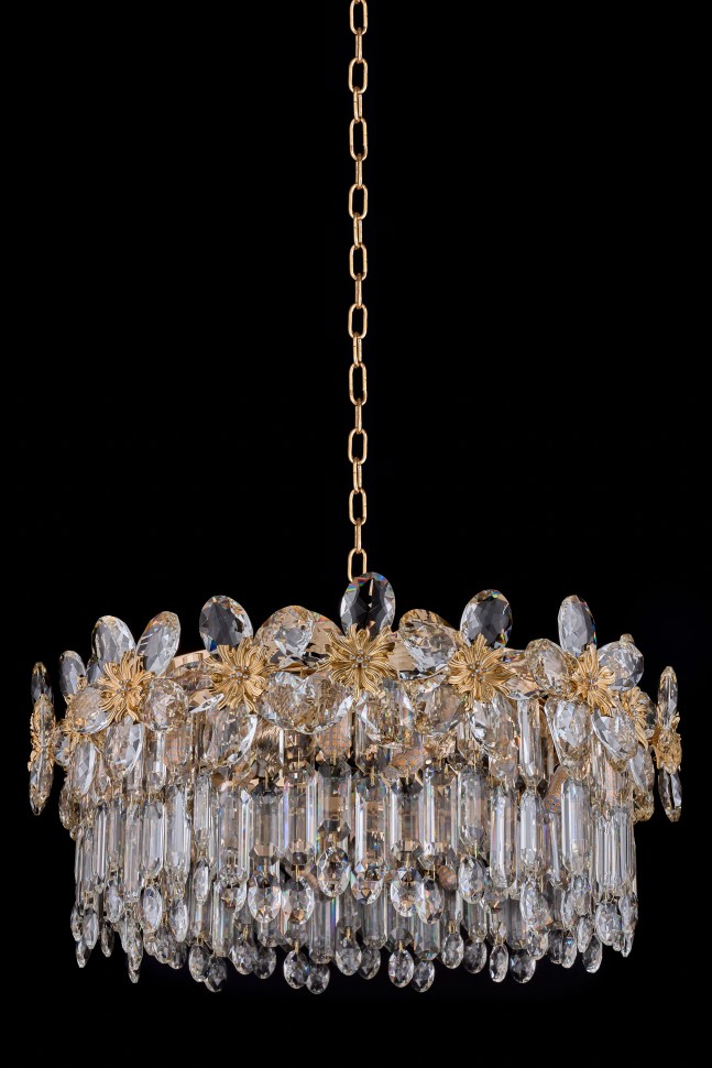 Вдохновение красотой цветов. Дизайн коллекции Jardin воплощает любовь к эстетике дворцовых садов. И каждый светильник – как отдельный сказочный сад из хрусталя. Декоративные элементы выполнены в виде крупных цветов, центр которых украшен сверкающими стразами. Подвижные элементы плафонов также из хрусталя высшего качества. Каждый элемент имеет множество граней, невероятно эффектно отражающих свет. Арматура светильников – из металла с гальваническим покрытием золотого цвета. Коллекция представлена люстрами различных размеров и форм и настенным светильником.