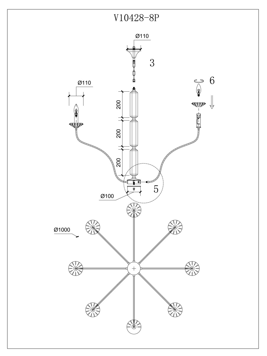Люстра подвесная Moderli V10428-8P Catania с хрустальными вставками