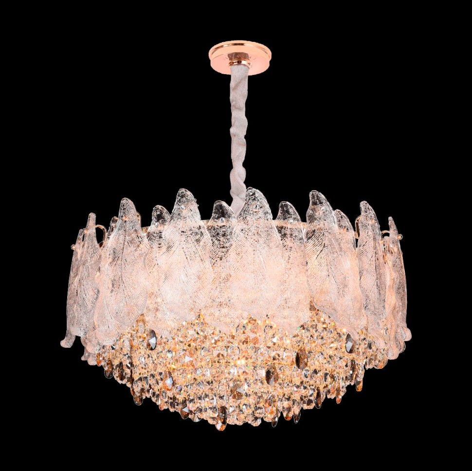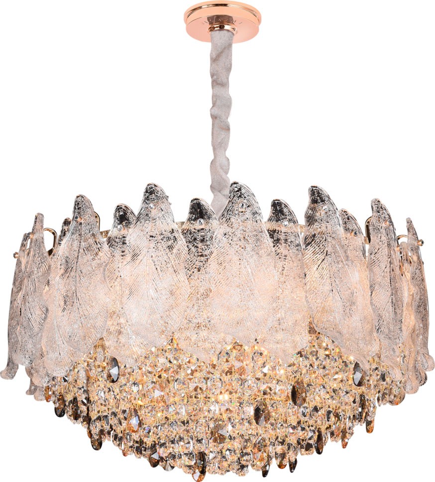Подвесы люстр изготовлены из стекла самого высокого качества и прозрачного хрусталя. Вкрапления из тонированного хрусталя янтарного цвета создают эффект теплых, медовых бликов.
