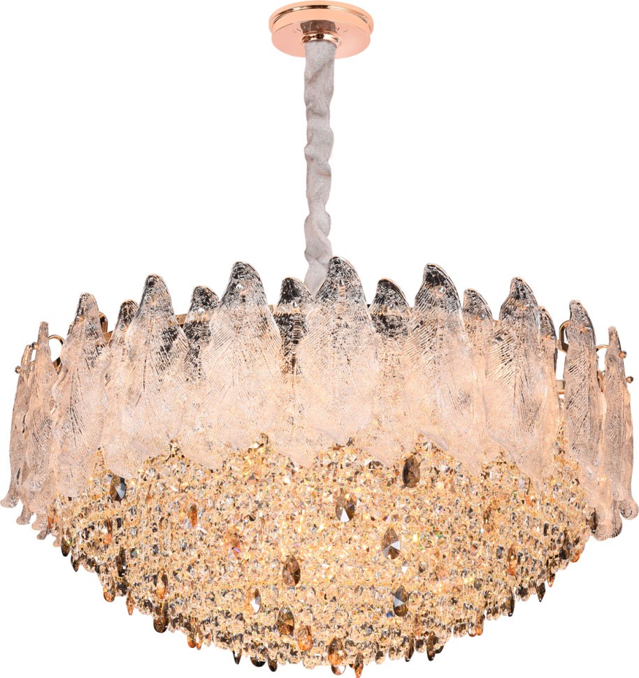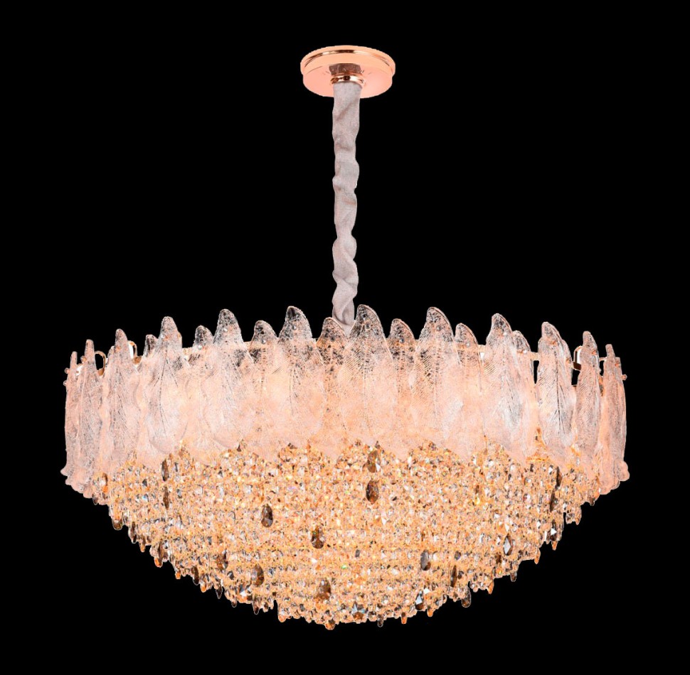 Подвесы люстр изготовлены из стекла самого высокого качества и прозрачного хрусталя. Вкрапления из тонированного хрусталя янтарного цвета создают эффект теплых, медовых бликов.