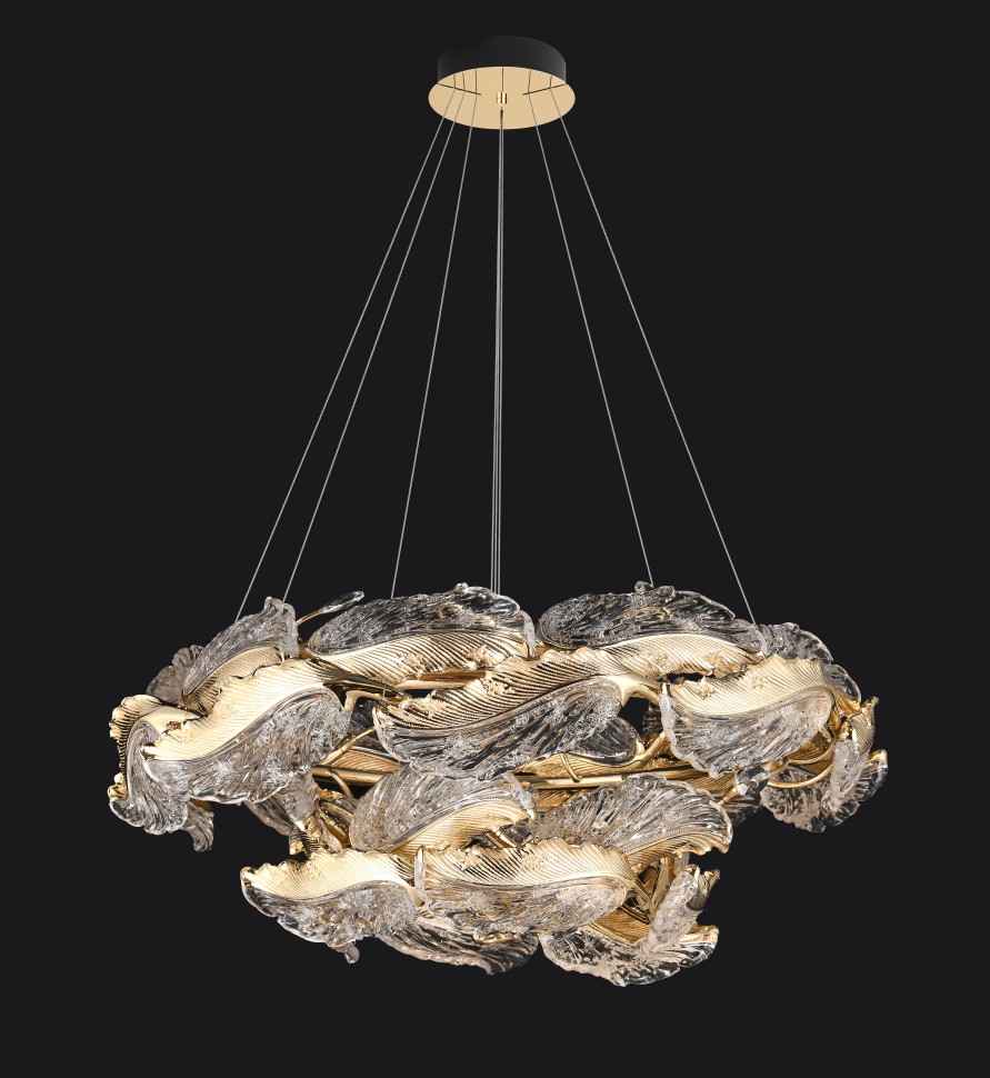 Плафоны, выполненные из прочной полимерной смолы, напоминают лёгкие перья, зависшие в воздушном танце света и тишины. Они словно парят в пространстве, сохраняя ощущение невесомости и внутренней свободы. Стальная арматура с гальваническим покрытием не только придаёт конструкции надёжность, но и подчеркивает её изящество, соединяя прочность с грацией. Это союз формы и смысла, где каждый элемент дышит стилем.