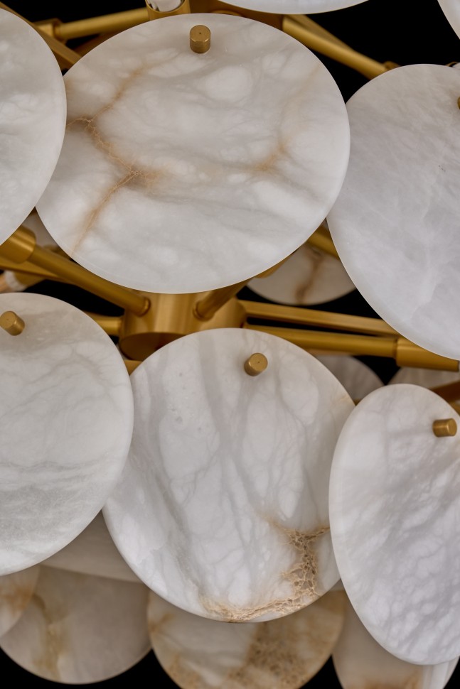 Плафоны выполнены из натурального испанского алебастра, а корпус – из латуни. Сочетание этих материалов делает светильники прочными и долговечными.