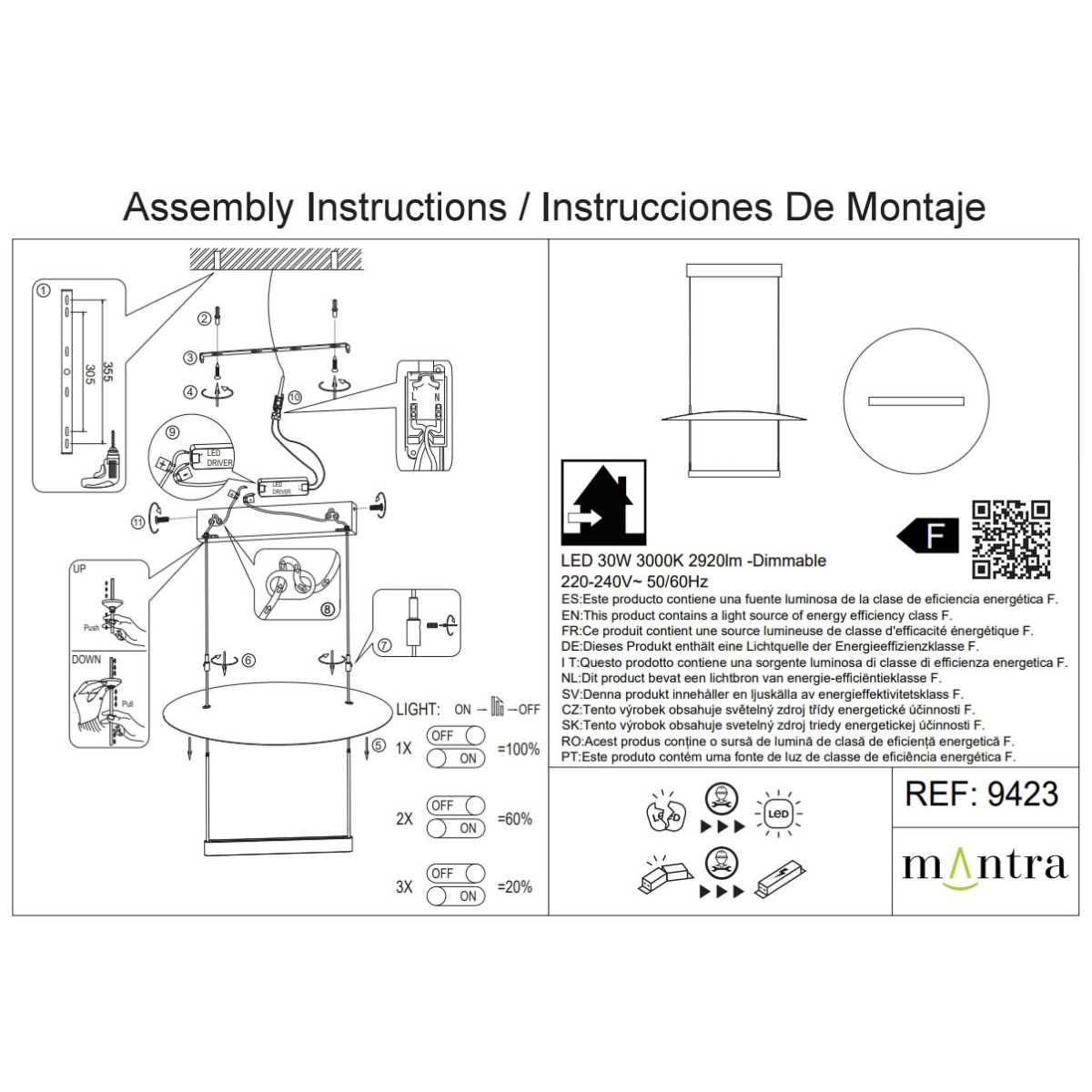 Подвесная люстра Mantra Sun Ii 9423