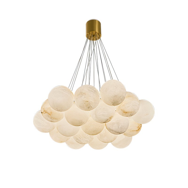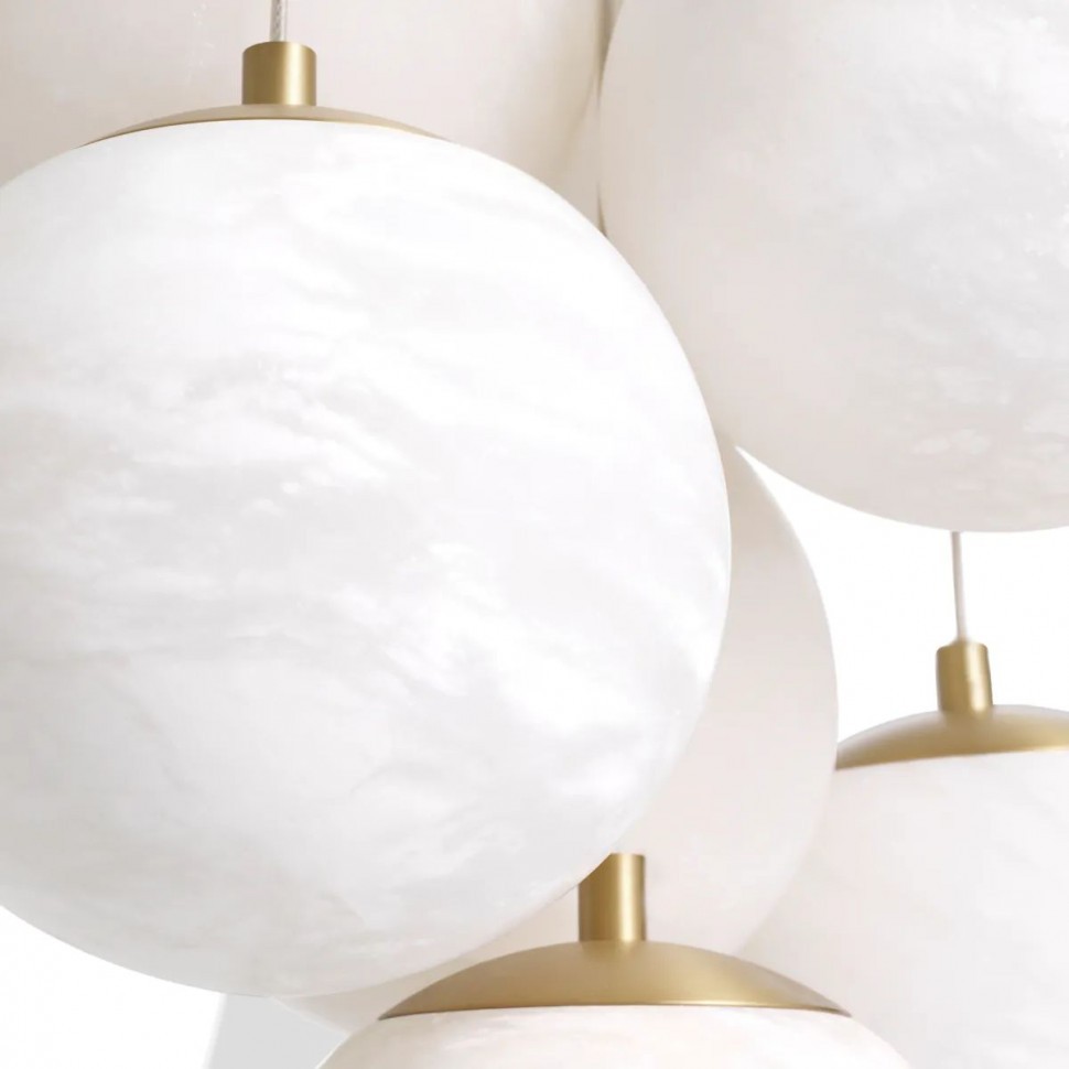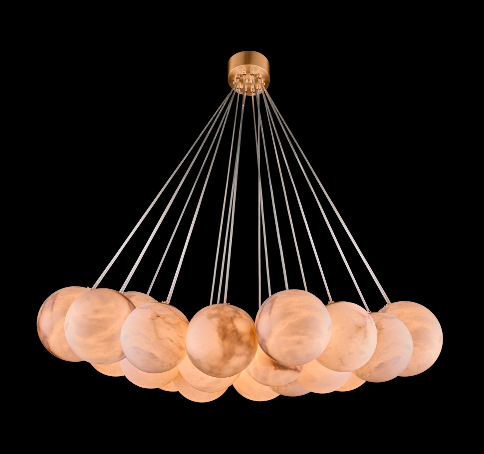 Плафоны выполнены из натурального камня - испанского алебастра. Корпус – из металла с гальваническим покрытием цвета латуни.