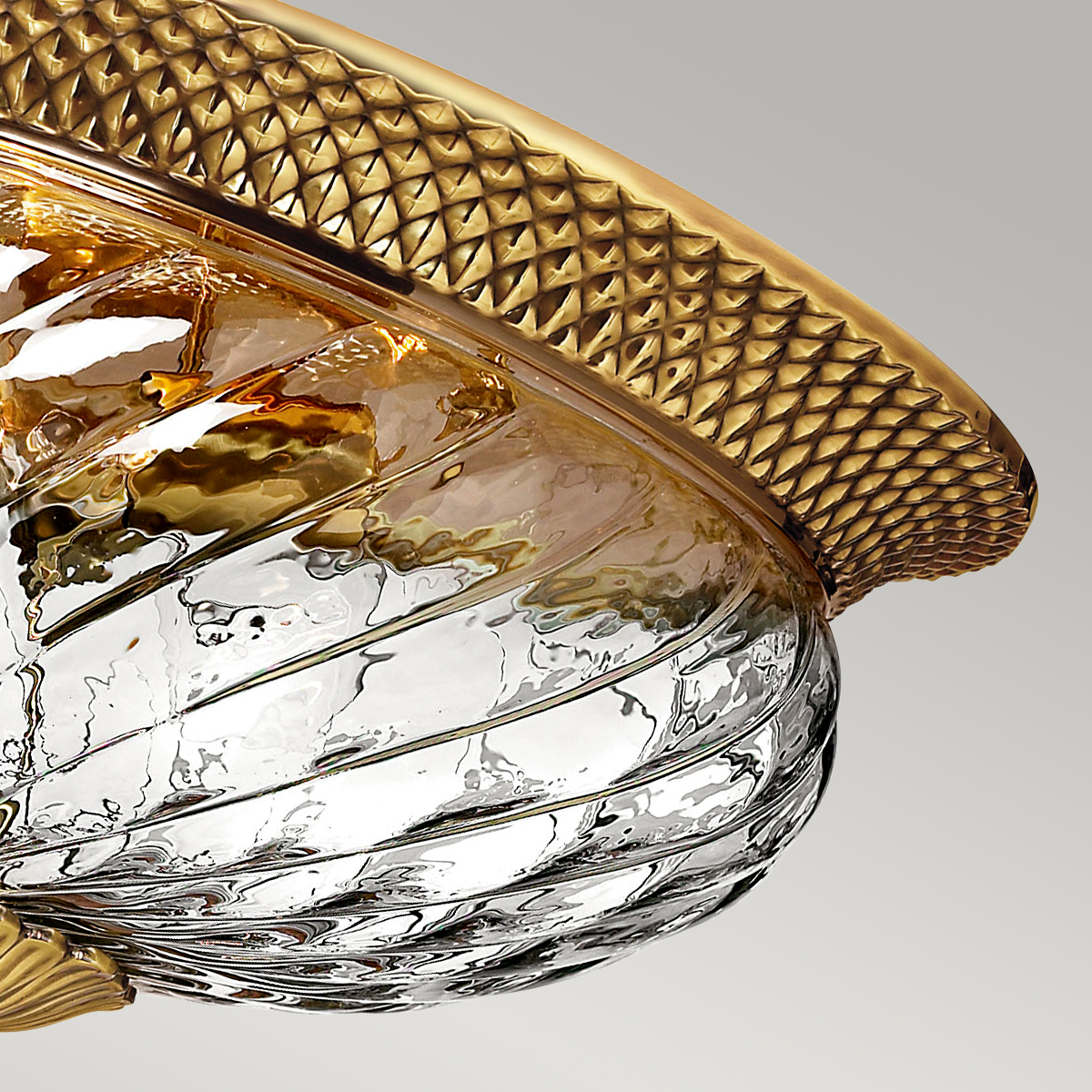 Потолочный светильник Elstead Lighting HK-PLANTATION-FL-BB. Светильник украшен необычным плафоном, изготовленным из чистого оптического стекла. . Основание в отделке - Полированная латунь. Идеально подойдет для освещения гостинной, кабинета, кухни, прихожей, спальни, столовой, детской.